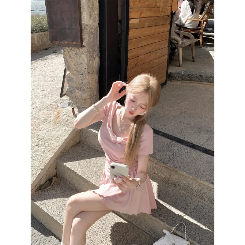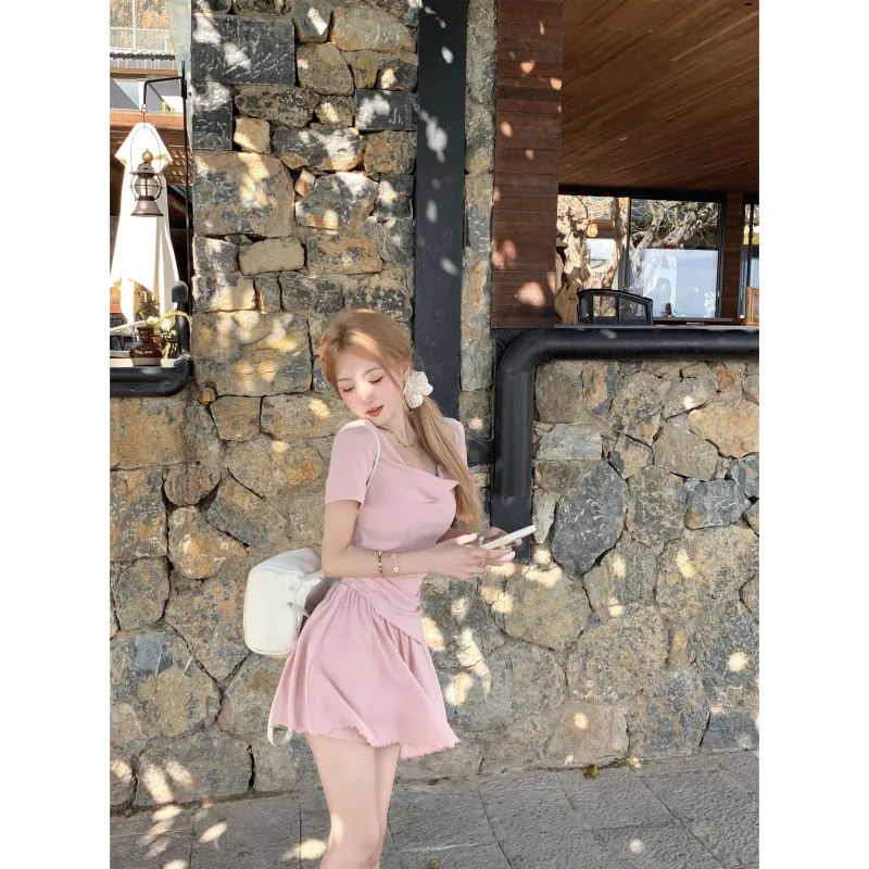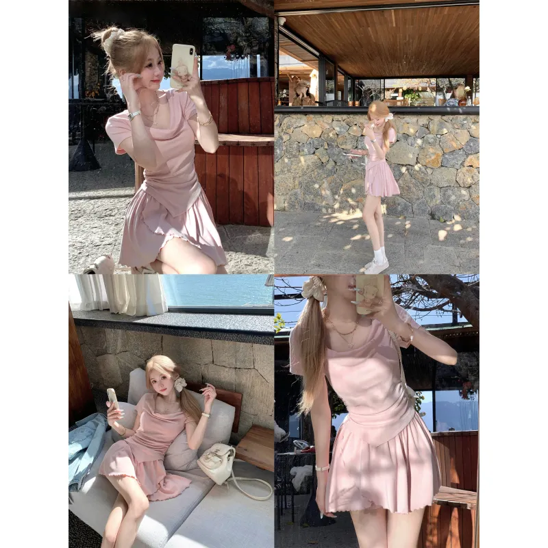 Комплект:Топ в стиле Swing с вставками, розовый, балетный