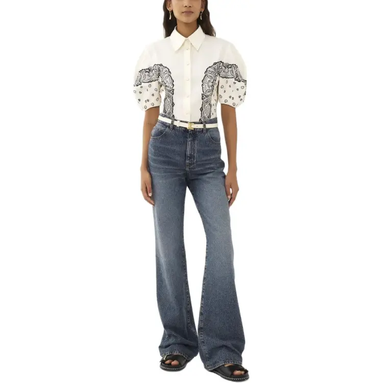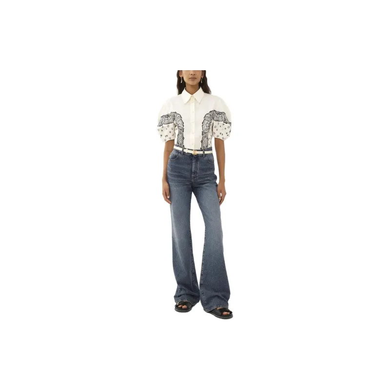 Chloe Воздушный шар Рукав С принтом Рубашка Женская Белая