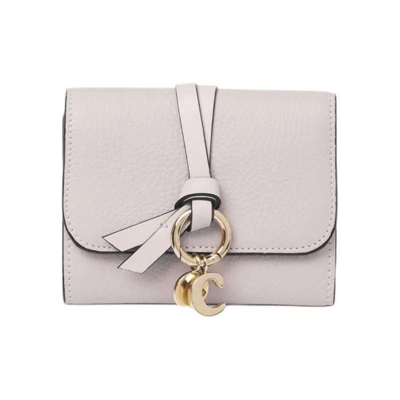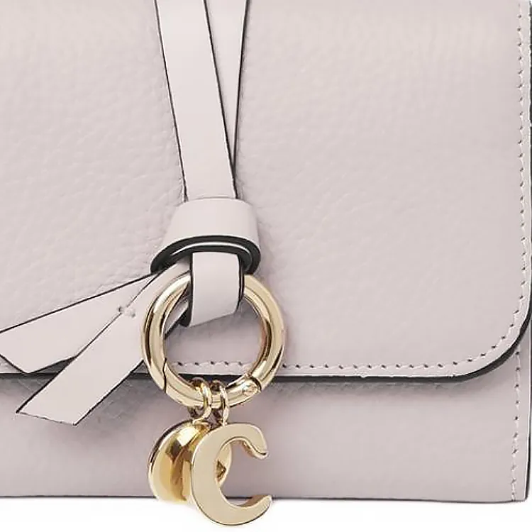 Chloe Alphabet Крупнозернистая текстура коровьей кожи с блестящей телячьей кожей держатель для карт кошелек маленький женский розово-бежевый