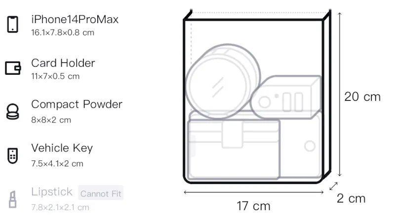 Длина 17 см * Ширина 2 см * Высота 20 см