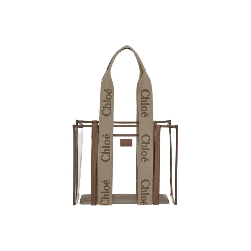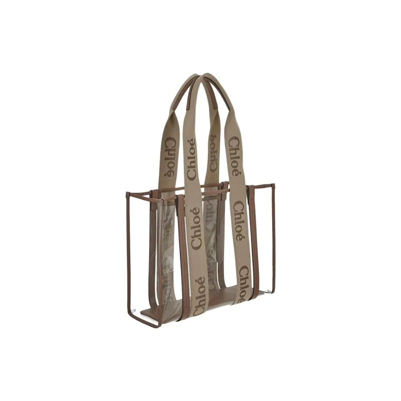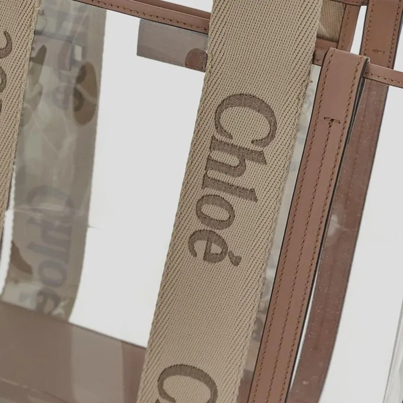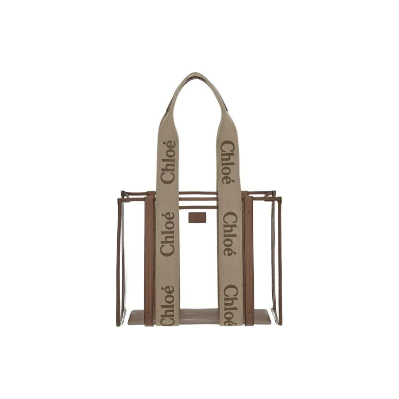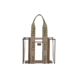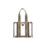 Chloe Linen Canvas Calfskin Tote Bag Shopping Bag Women's Light Beige