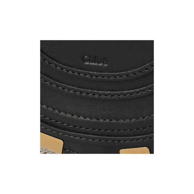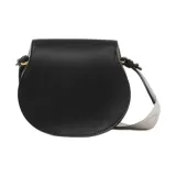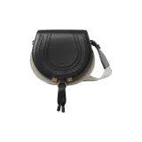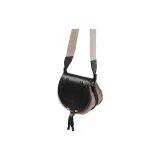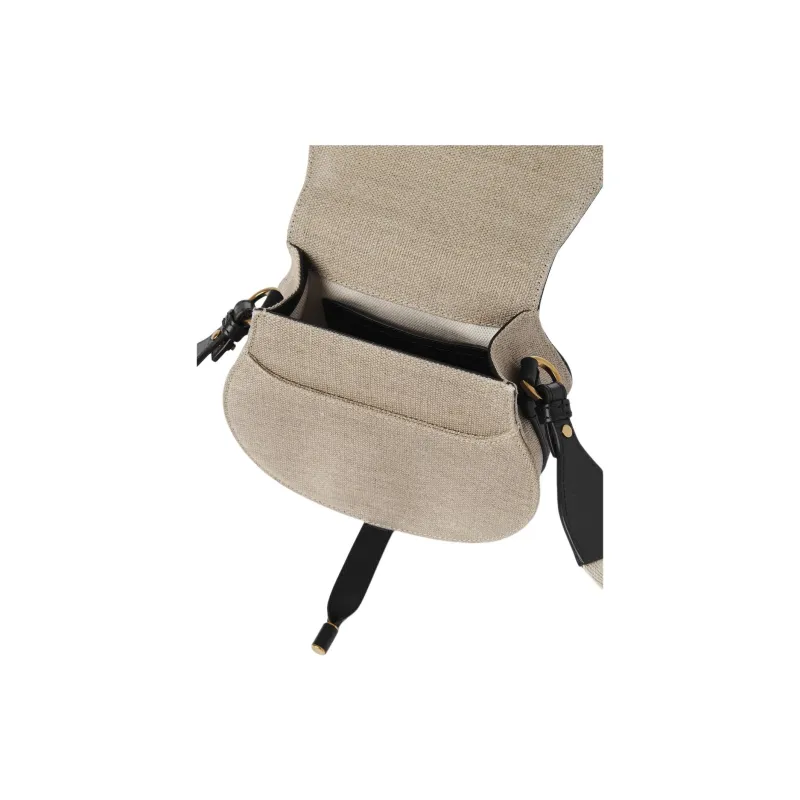 Chloe Linen Canvas Smooth Calfskin Saddle Bag Crossbody Shoulder Bag Small Women's Black