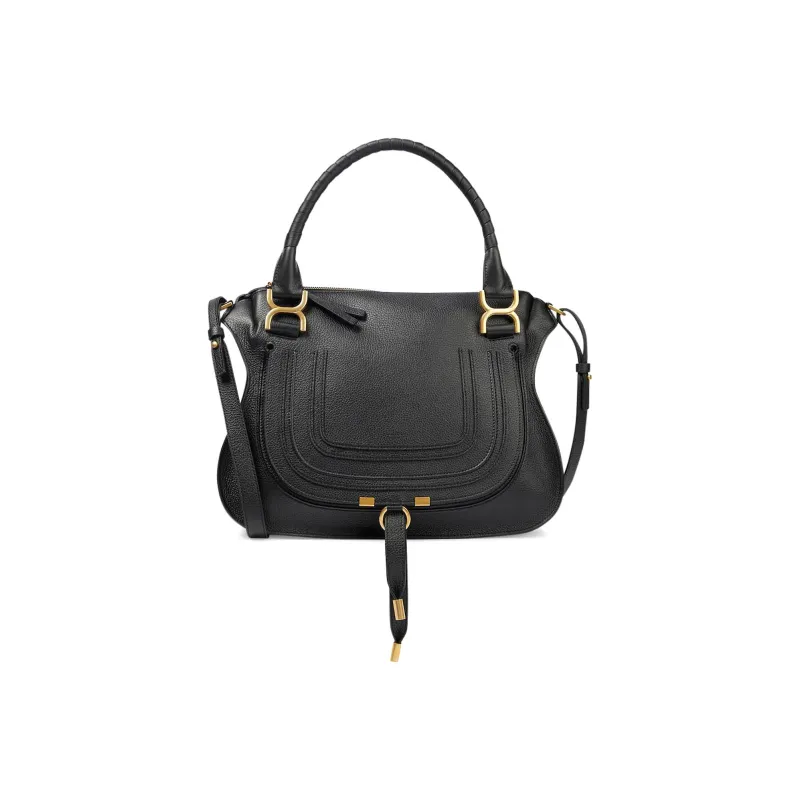 Chloe Marcie Рельефная Телячья Кожа Сумка через плечо Сумка среднего размера Женская Черная