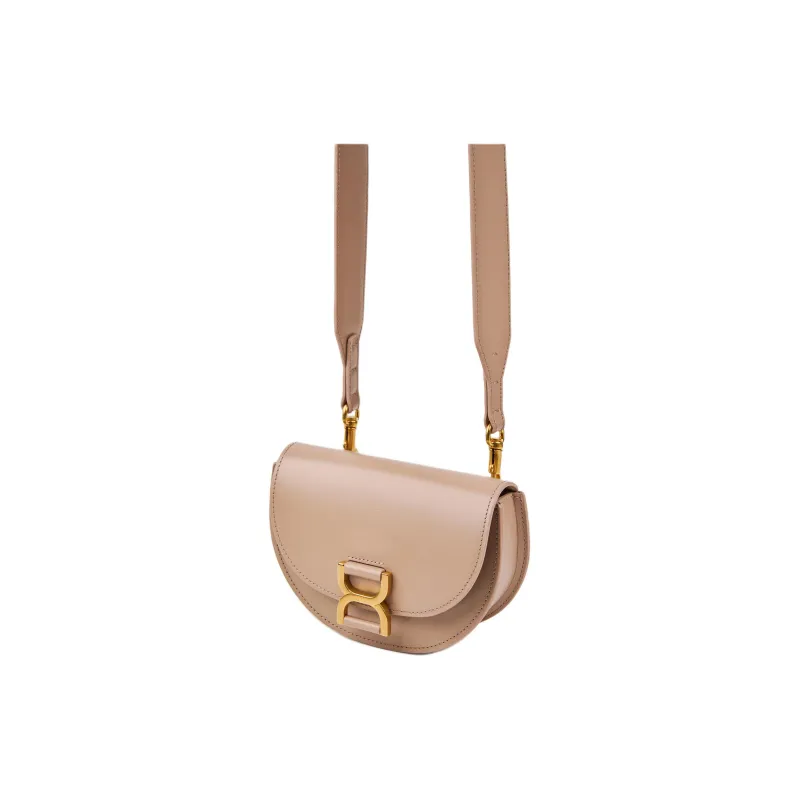 Chloe Marcie Smooth Calfskin Flap Bag Crossbody Shoulder Bag Mini Women's Beige Pink