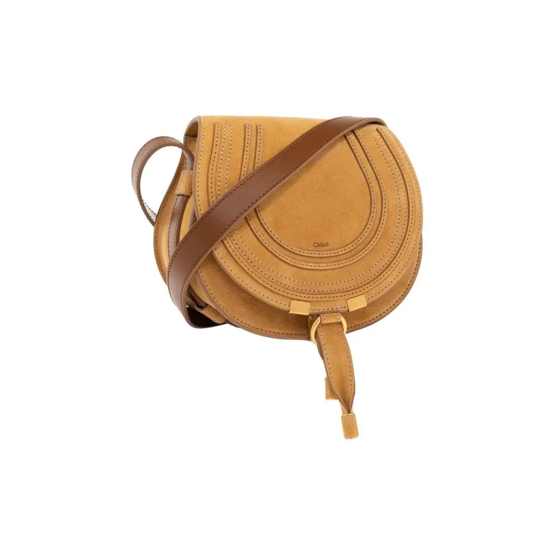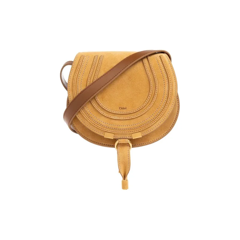 Chloe Marcie Замша Телячья кожа Седло Сумка Сумка через плечо Маленькая Женская Желтая