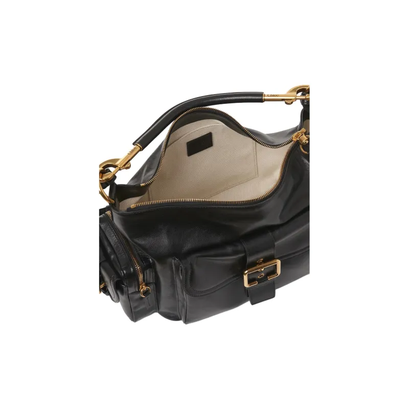 Chloe Естественный Блестящий Буйвол Кожа Camera Сумка Сумка Сумка через плечо Сумка через плечо Женская Черная
