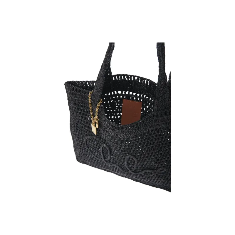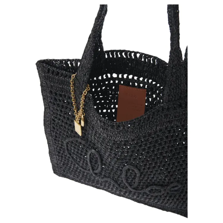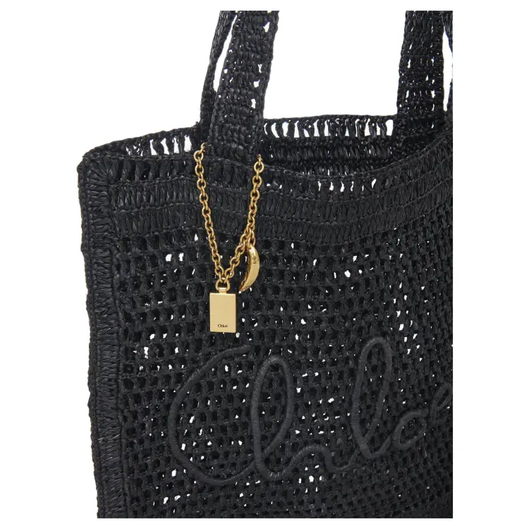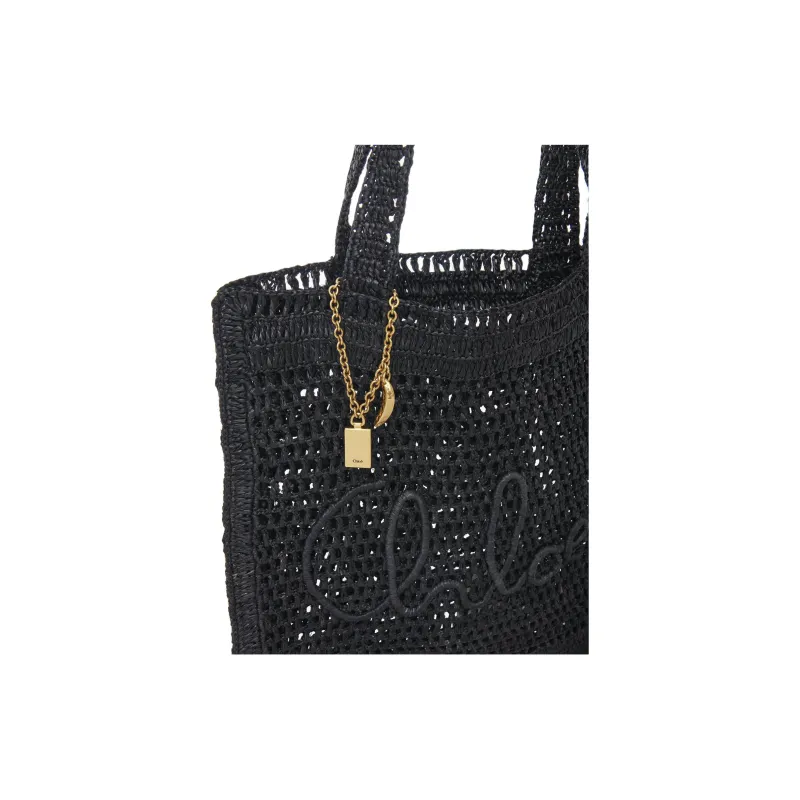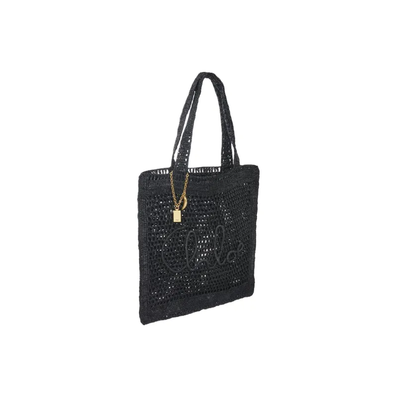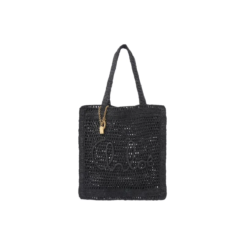 Chloe Raffia Tote Bag Shopping Bag Handbag Shoulder Bag Women's Black