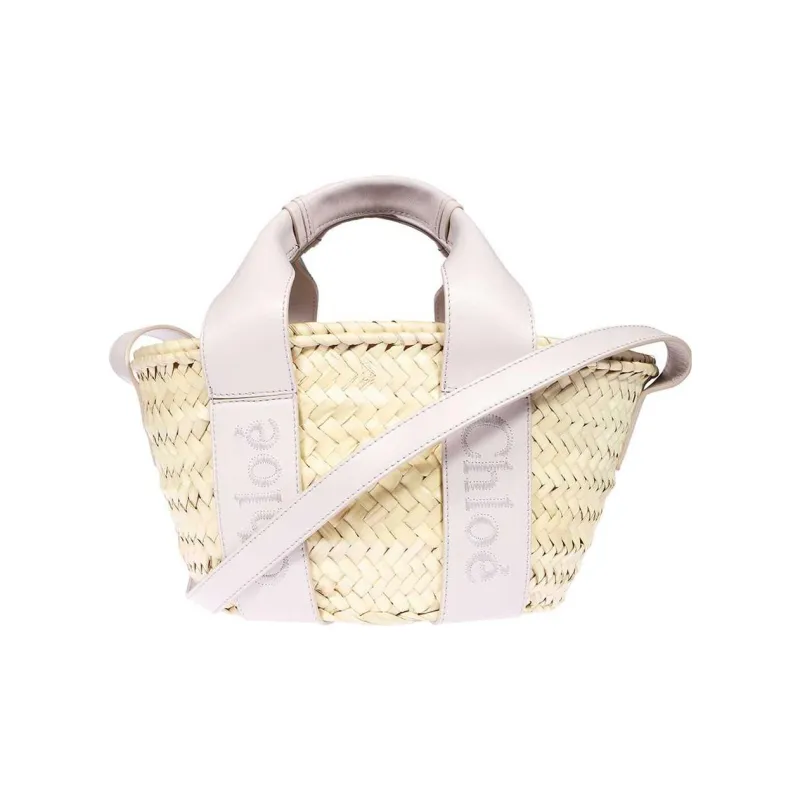 Chloe Raffia с гладкой телячьей кожей корзина-сумка сумка через плечо сумка маленькая женский серый розовый
