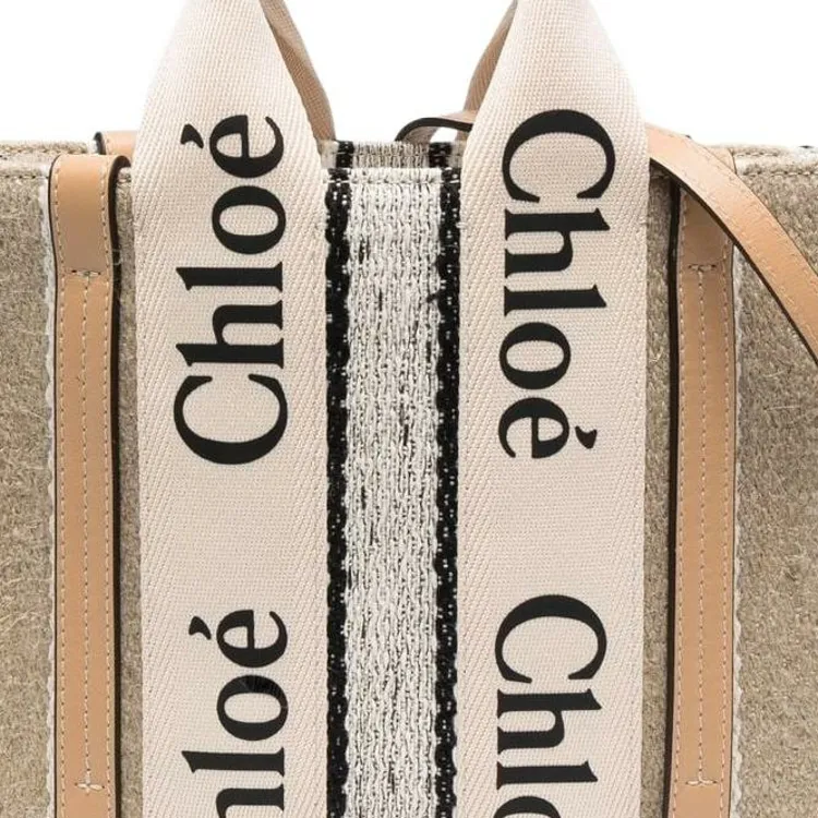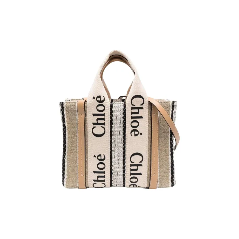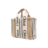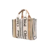 Chloe Woody Воловья кожа Пэчворк Холст Сумка Маленькая Женская Бежевая