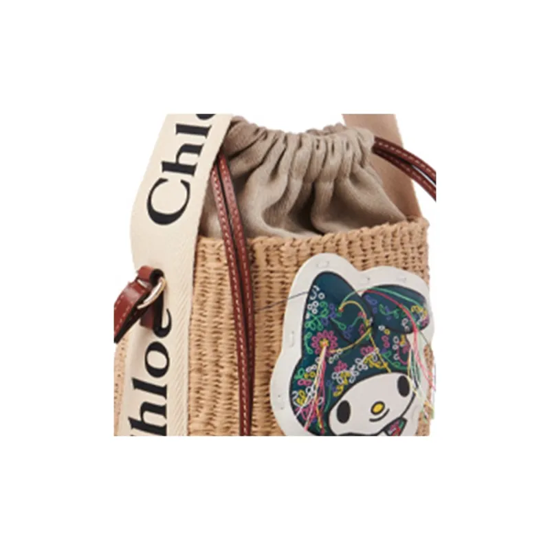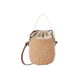 Chloe Woody Ткань Телячья Кожа Сумка через плечо Сумка Маленькая Женская Бежевая