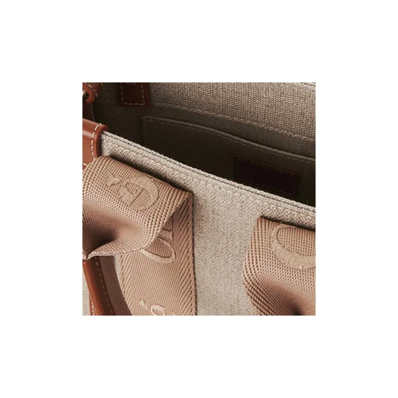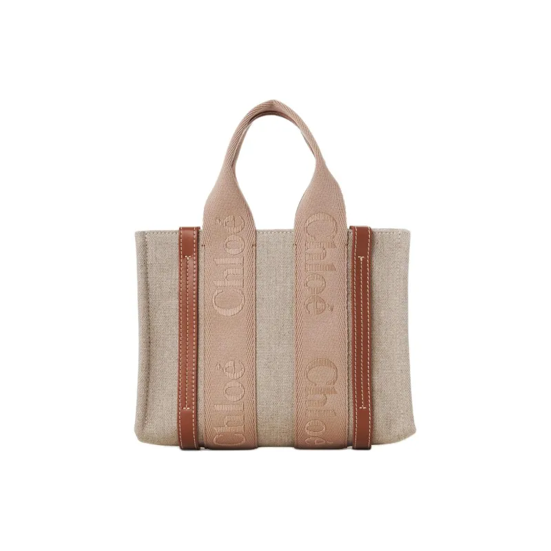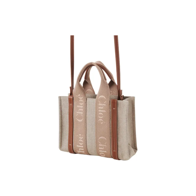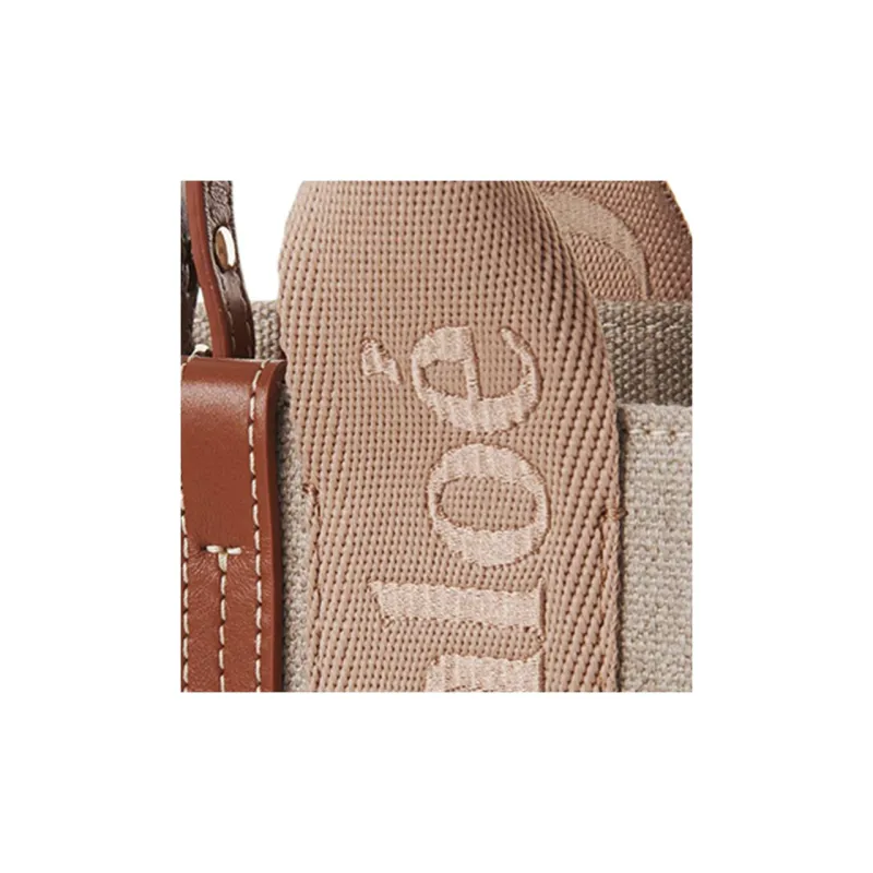 Chloe Woody Linen Shiny Calfskin Crossbody Bag Handbag Small Women's Light Umber