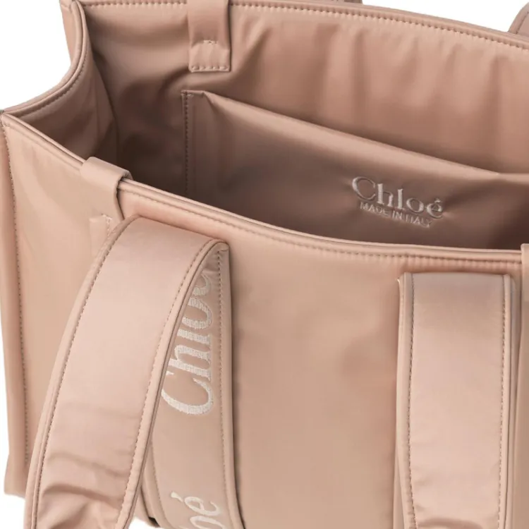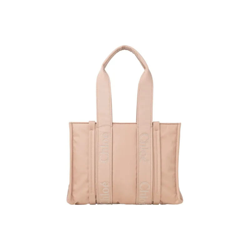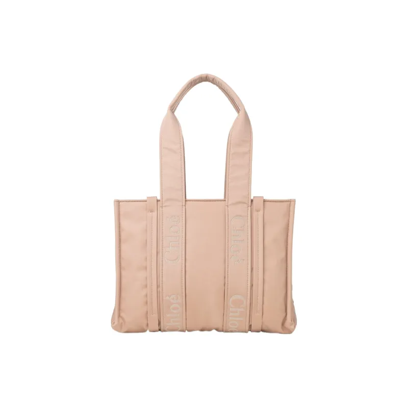 Chloe Woody Переработанный Нейлон Тоут Сумка Сумка для покупок Сумка через плечо Сумка среднего размера Женская Розовая
