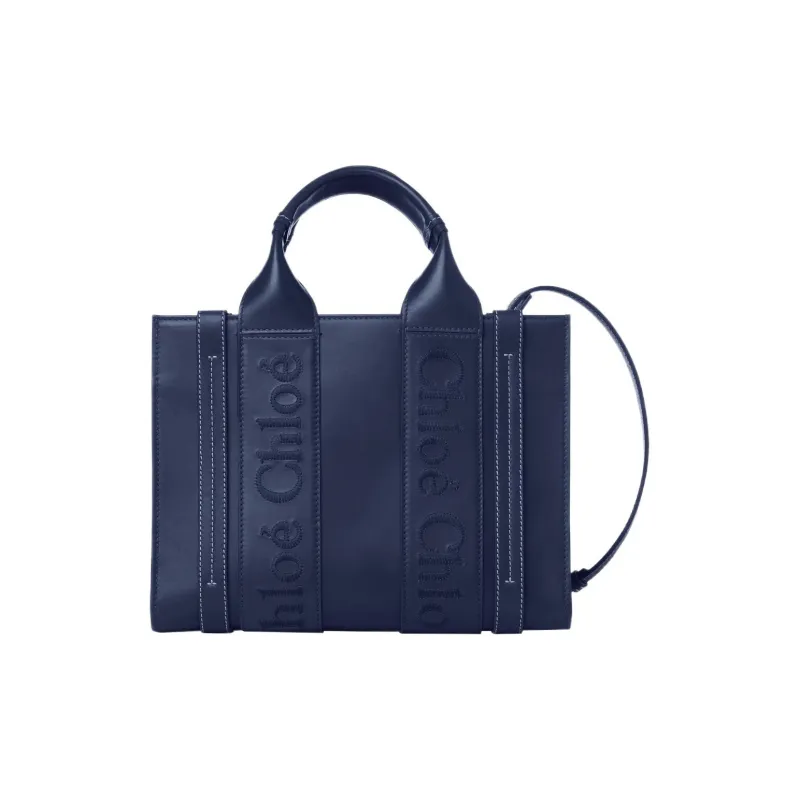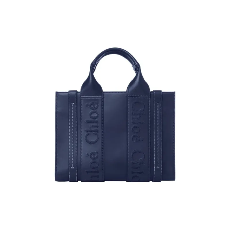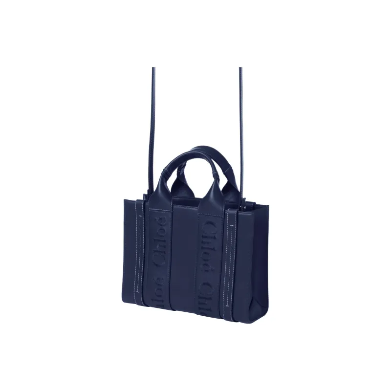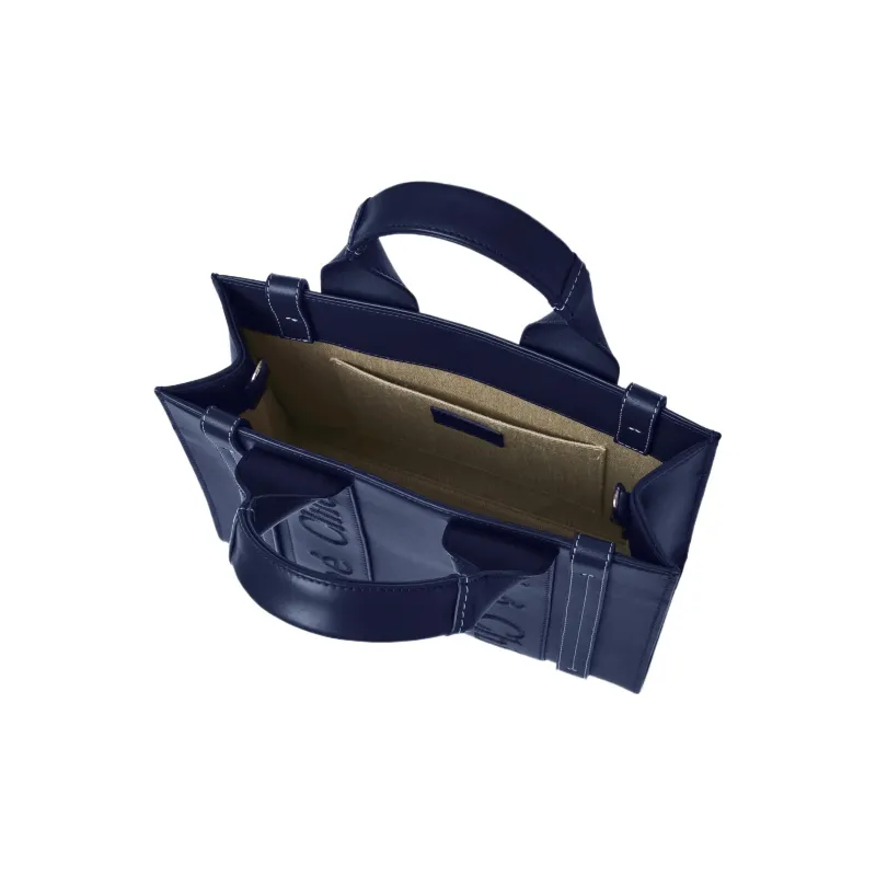 Chloe Woody Smooth Calfskin Tote Bag Shopping Bag Shoulder Bag Handbag Small Women's Night Blue