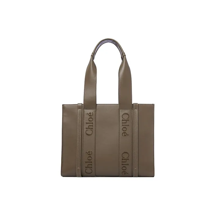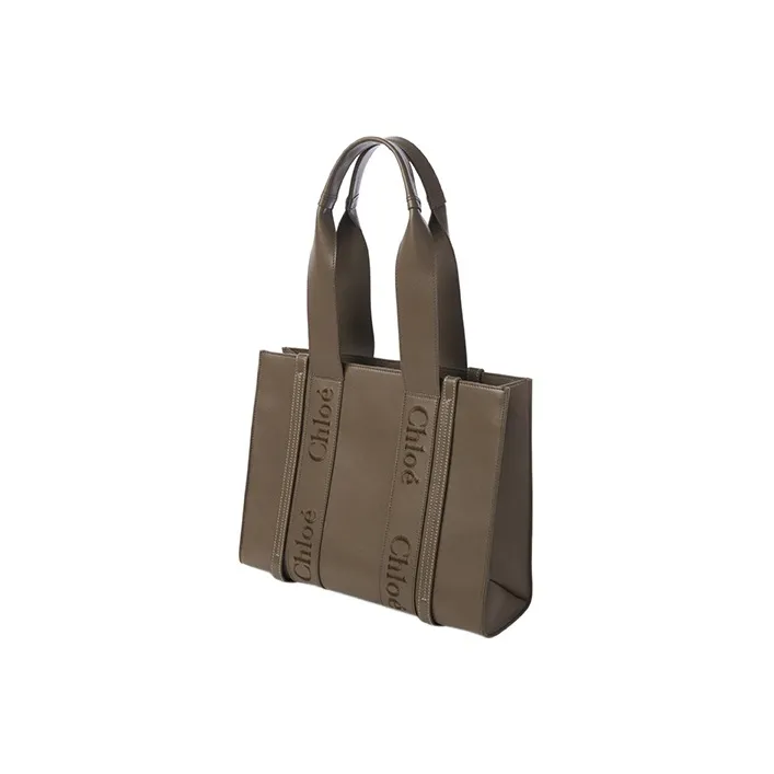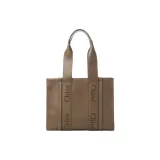Chloe Woody Smooth Calfskin Tote Bag Shopping Bag Shoulder Bag Handbag Medium Women's Army Green