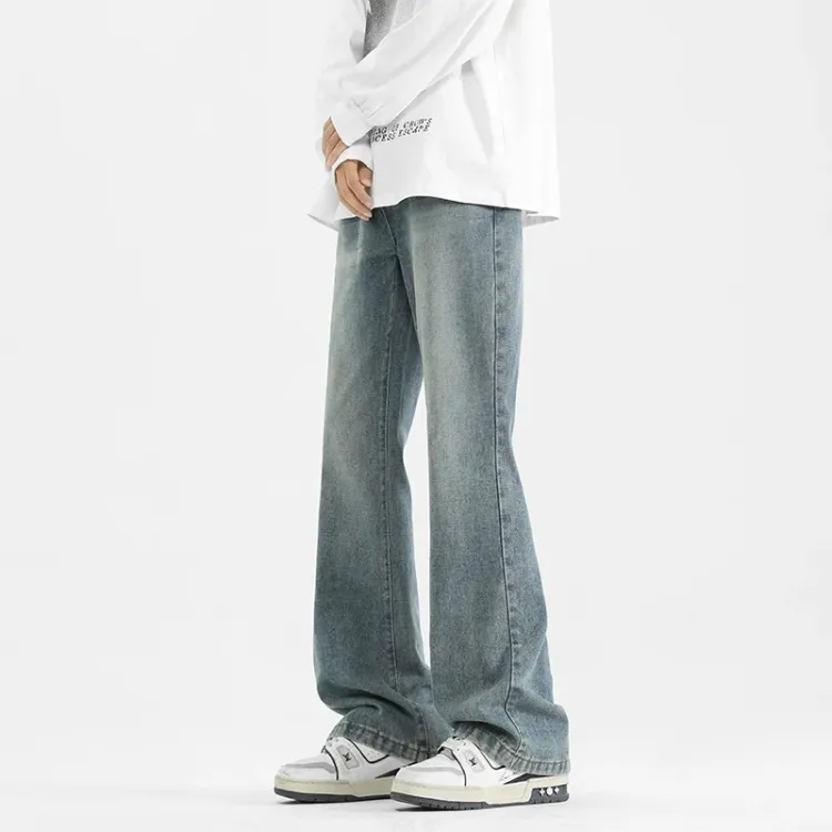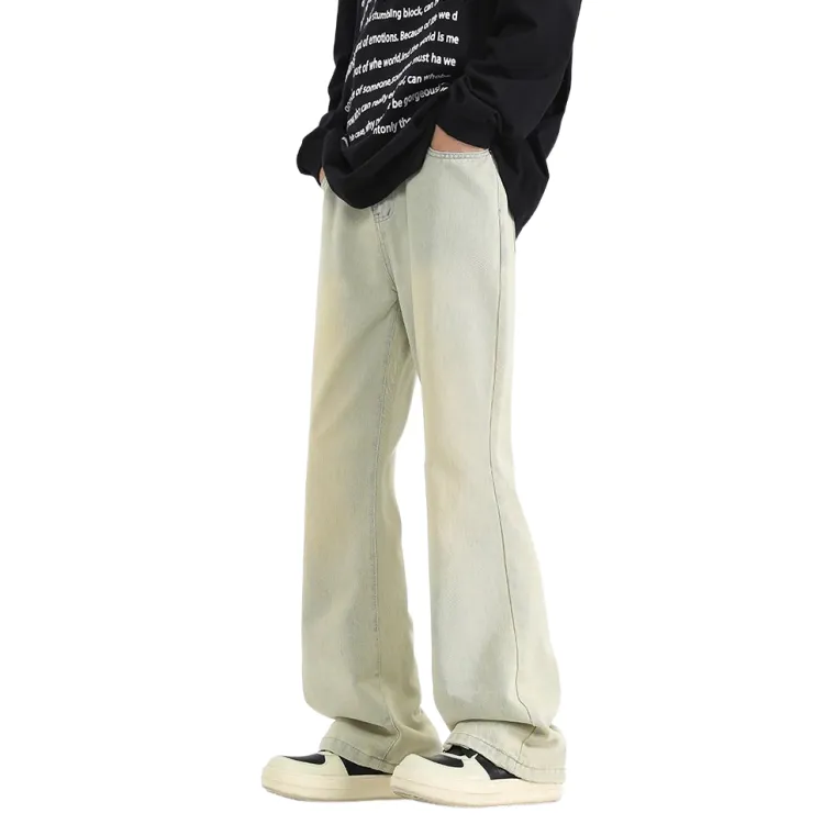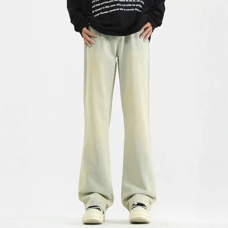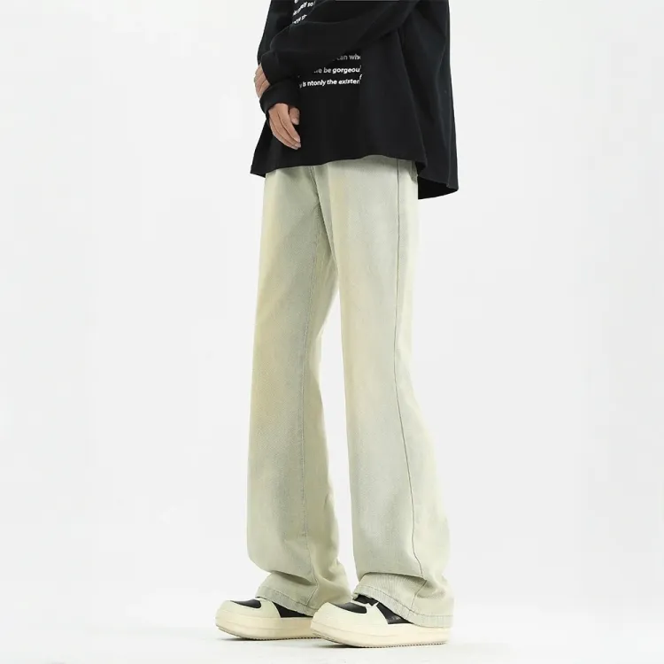 Желтые грязные джинсовые брюки-клеш