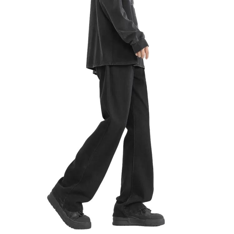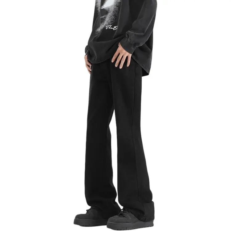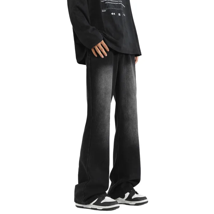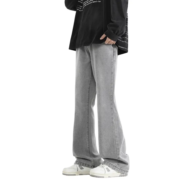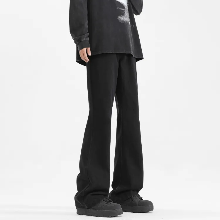 Цвет:Чёрный Серый Деним Брюки-Клеш