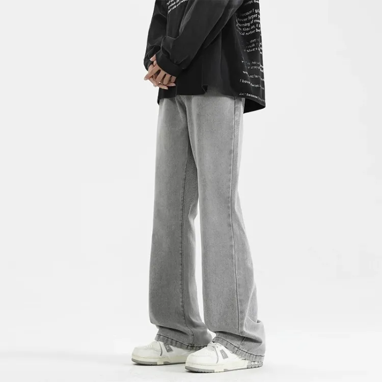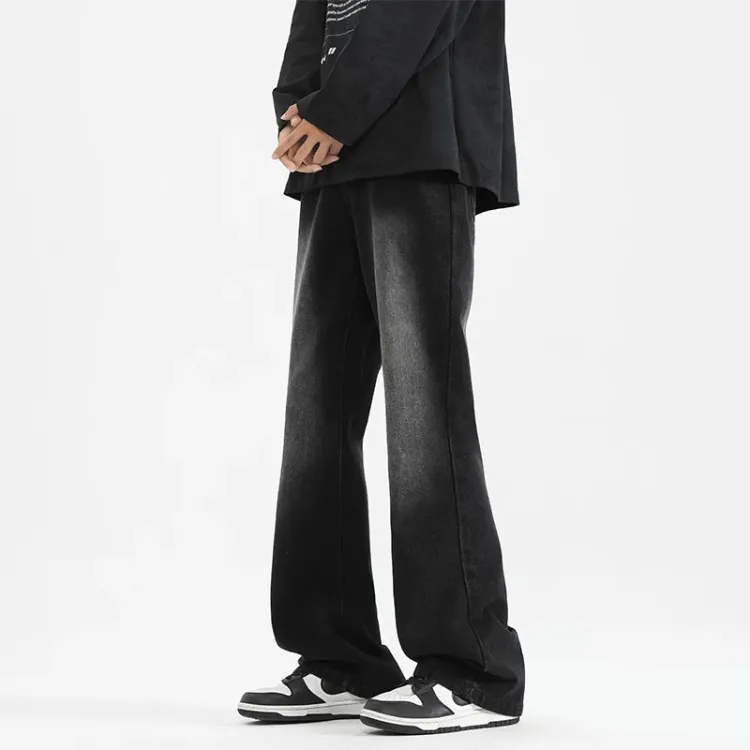 Чёрный Серый Деним Брюки-Клеш