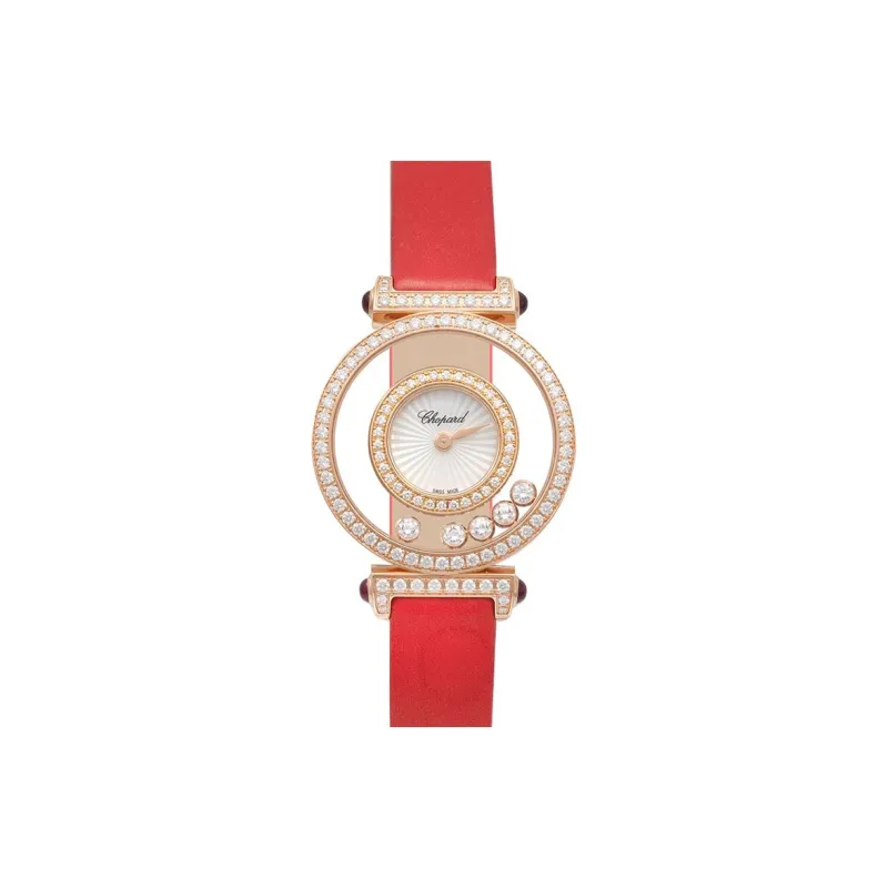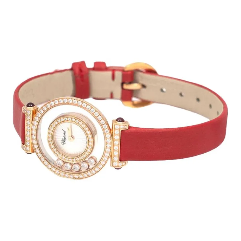 CHOPARD Happy Diamond Collection Кварцевый механизм Женские часы 26 мм Белый циферблат 18К Розовое золото Корпус часов Кожаный ремешок