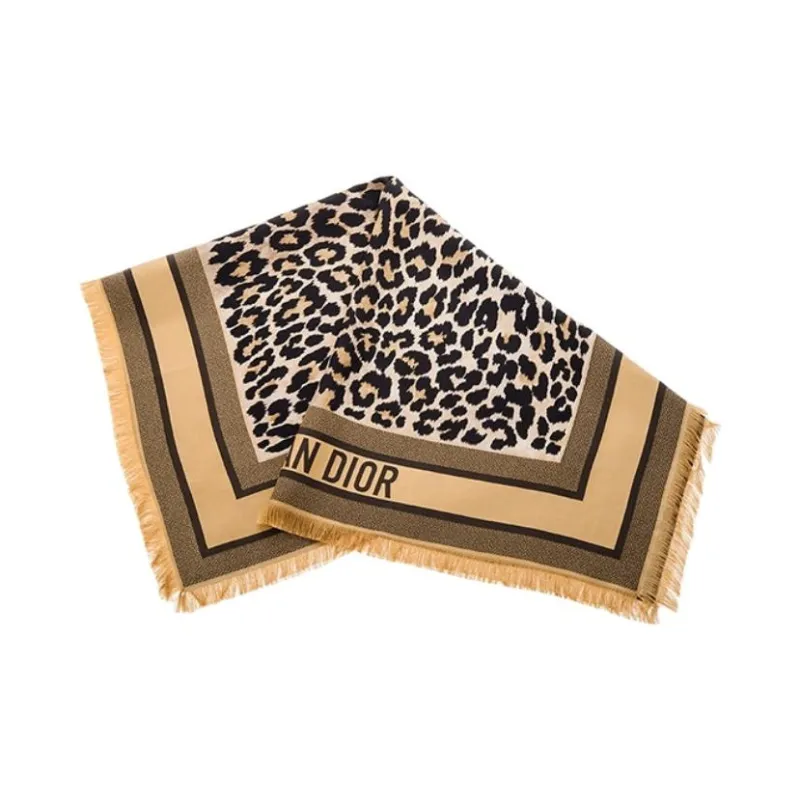 DIOR Шелк Саржа Женские Шали из Шелка с Леопардовым Принтом