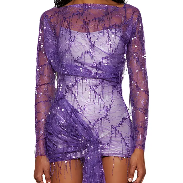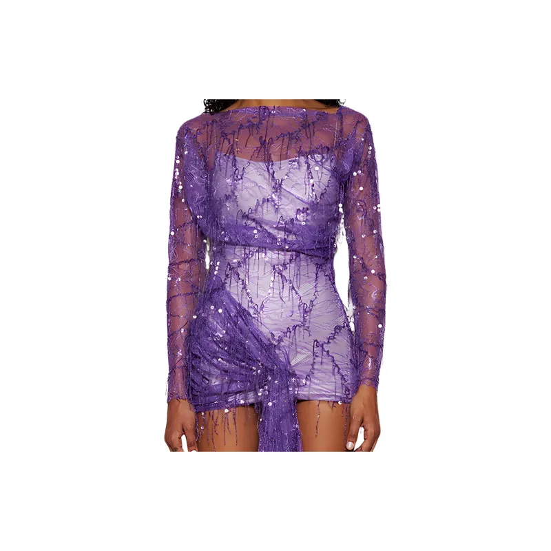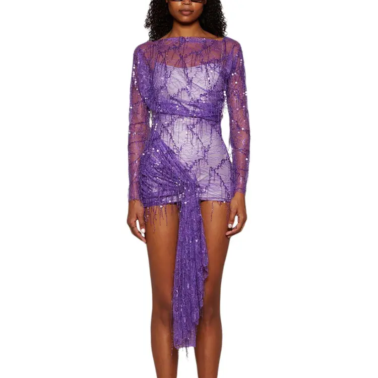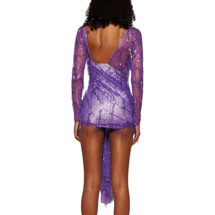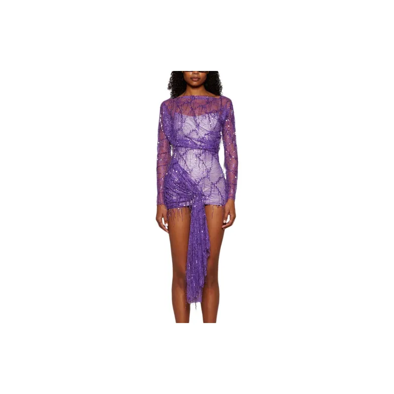 Christopher Esber SS24 Длинное платье с длинным рукавом женское фиолетовое