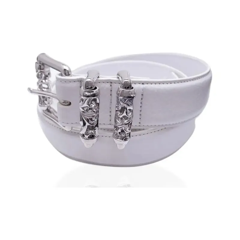 Chrome Hearts Логотип Emblem Шпилька Кожаные ремни Унисекс Белый