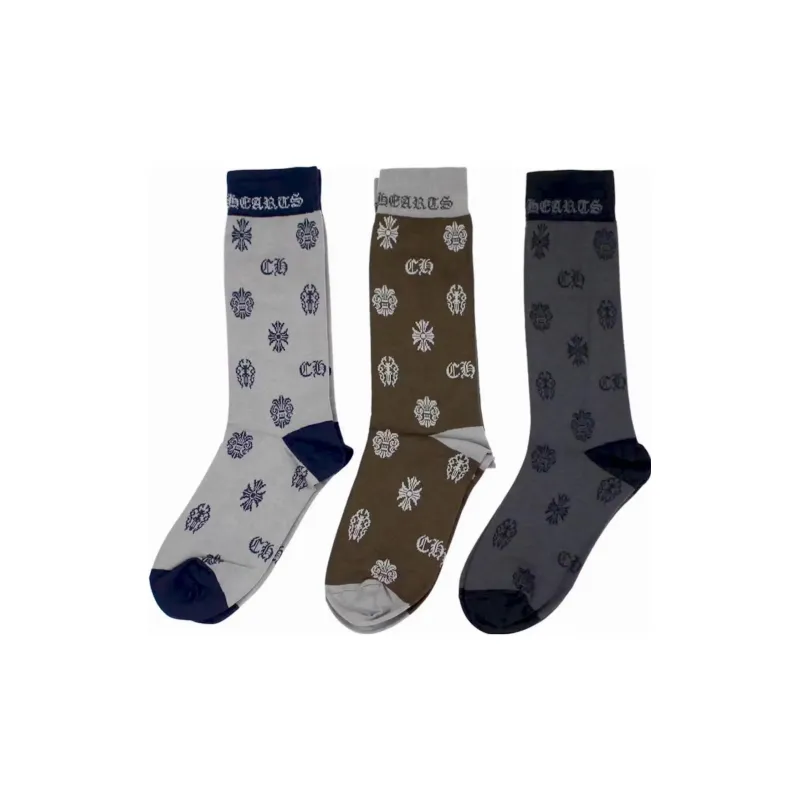 Chrome Hearts 3 пачки Светло-серый + Коричневый + Темно-серый Мужские носки до колена