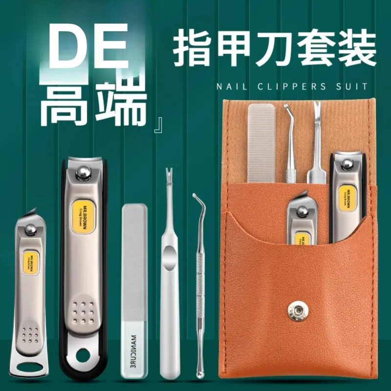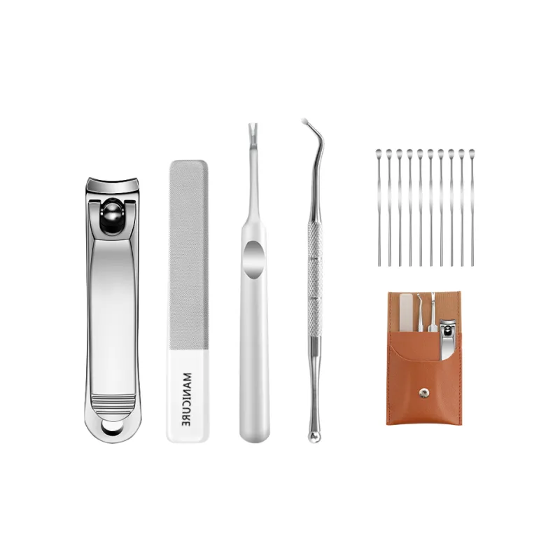 Коричневая кожа, сумка, утолщенные клипсеры, 4 шт. комплект + 10 шт. ложки для чистки ушей