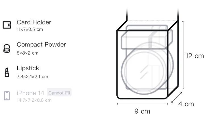 Д9*Ш4*В12см