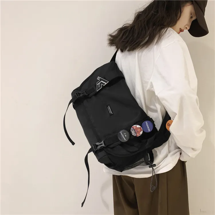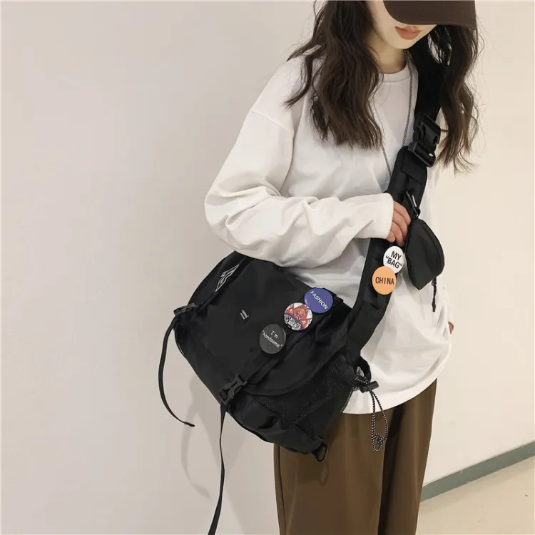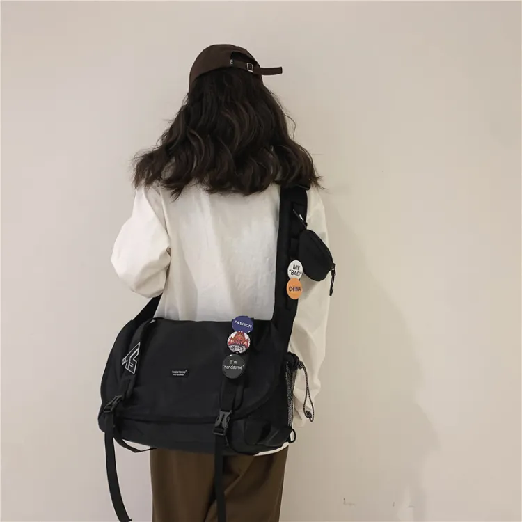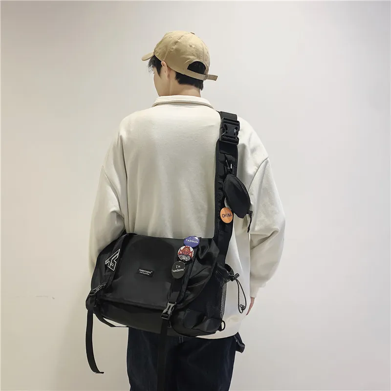 CHUNLONG Сумка через плечо Черная с брелоком и значком Унисекс