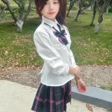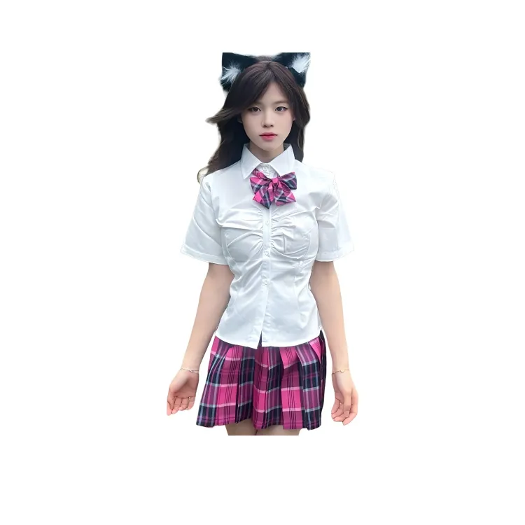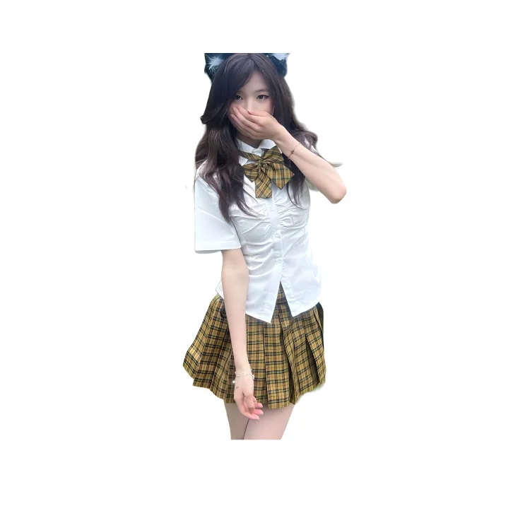 Короткий рукав рубашка + клетчатая юбка + бабочка