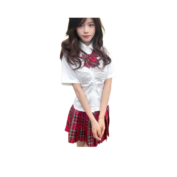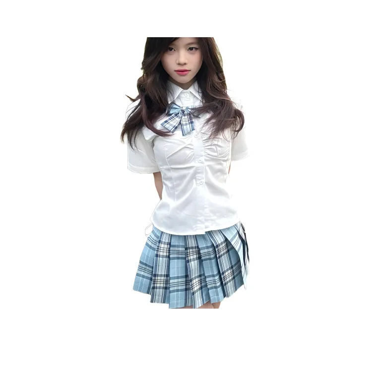 Короткий рукав + Клетчатая юбка в тартановом стиле + Галстук-бабочка