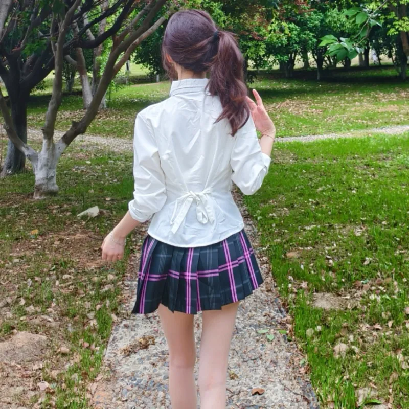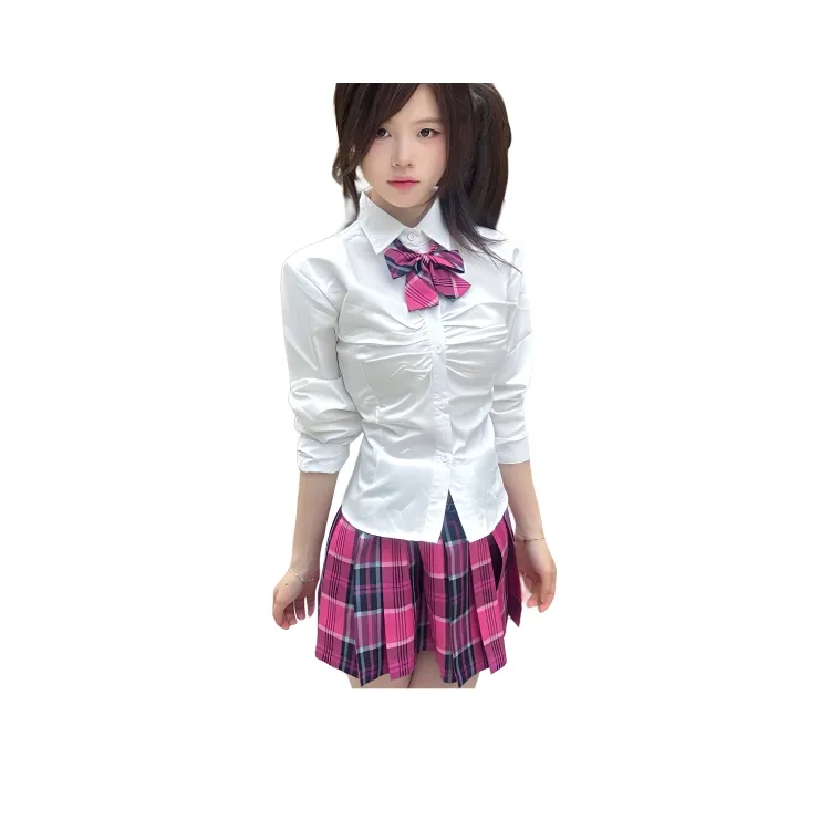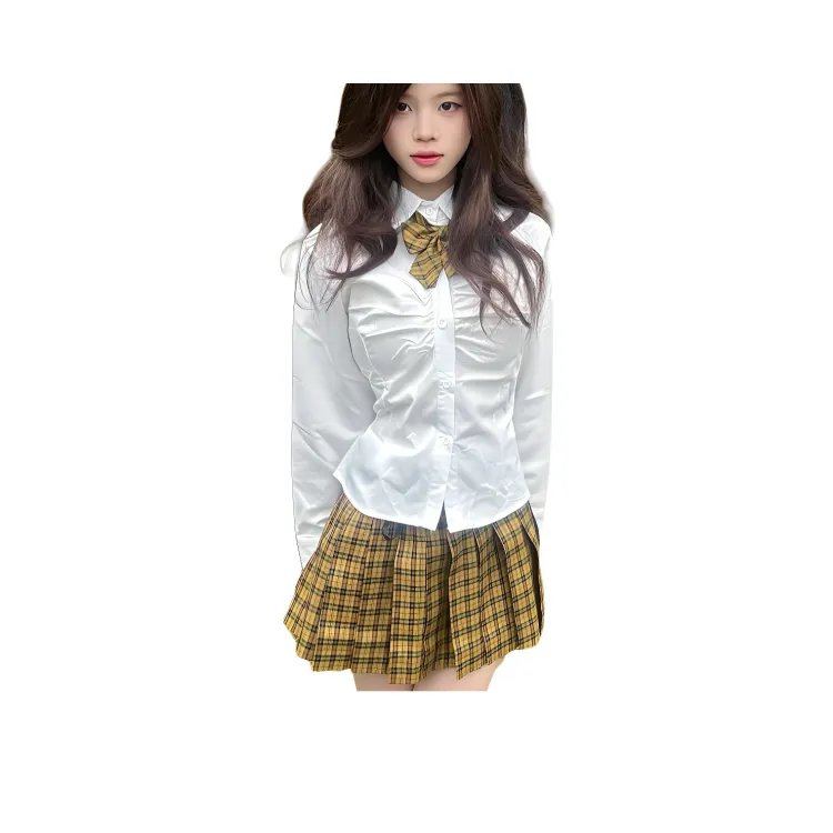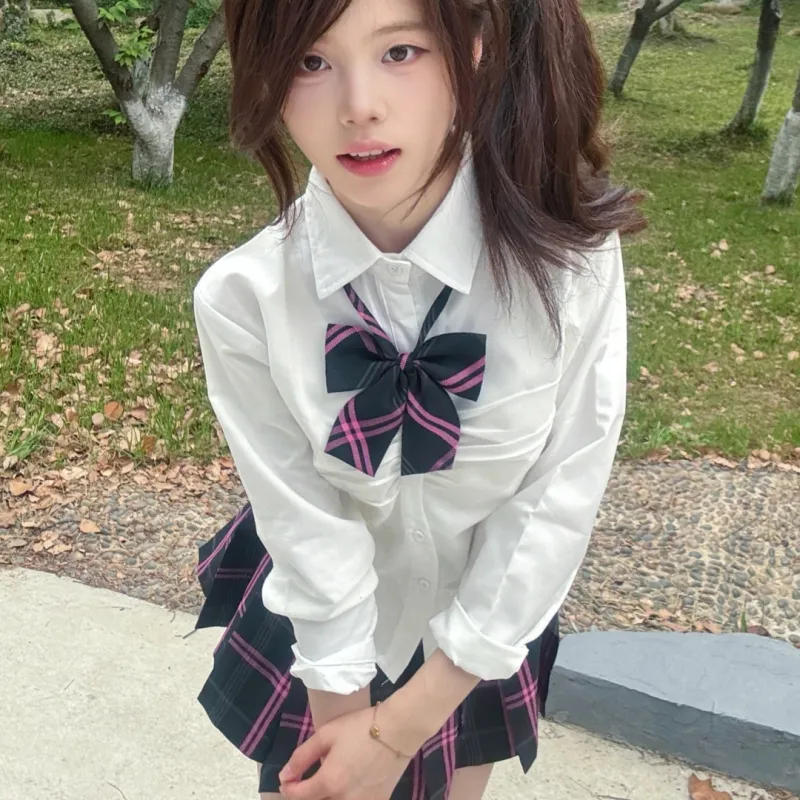 Длинный рукав + Клетчатая юбка + Галстуки-бабочки
