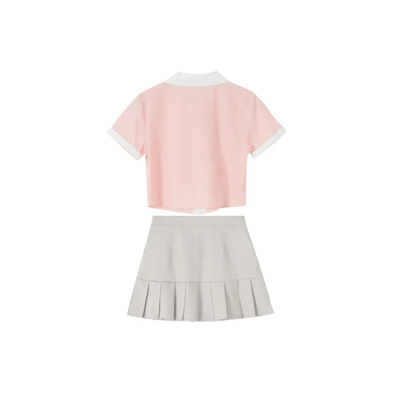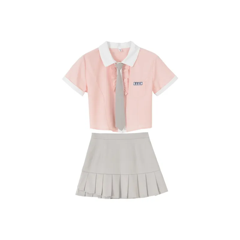 CHUNSHIMAN Розовая рубашка + серая юбка + галстук Женская униформа