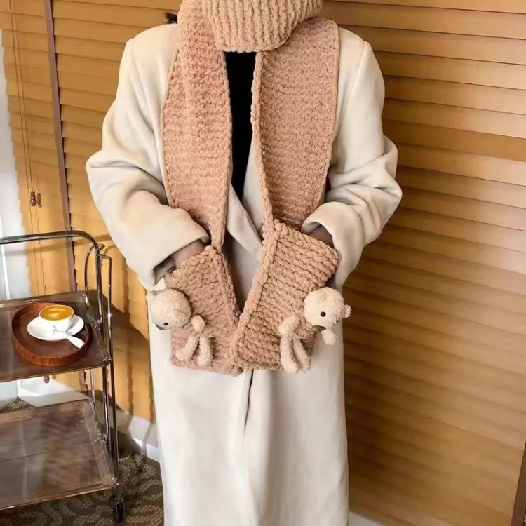 CHUNTUSHU Карман Медведь Шарф Осенний и Зимний Теплый Плетеный Материал Ручная Работа Толстый Пряжа Шарф Ручная Работа Игрушки
