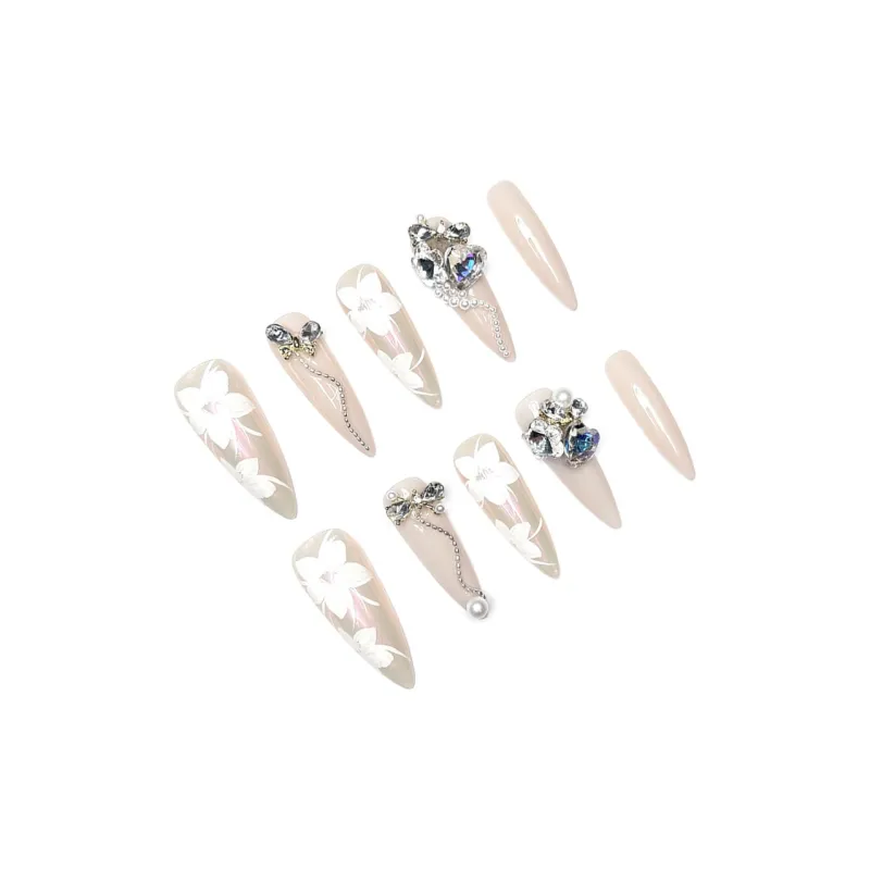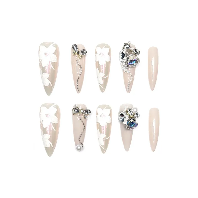 CHUNXUAN Original Handcrafted Премиум Goddess Pink Heavy Duty Diamond Heart Butterfly Floral False Nail Almond