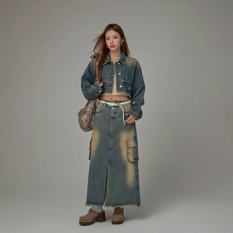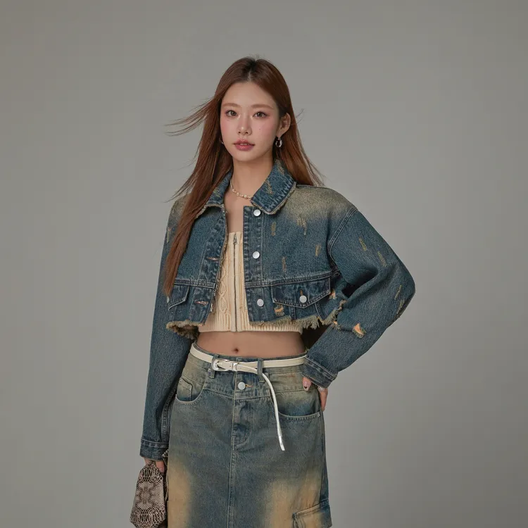 CHUU Джинсовый синий Женское короткое пальто
