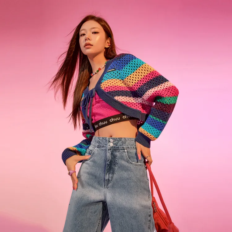 CHUU Радужные Полосы Женское Короткое Пальто