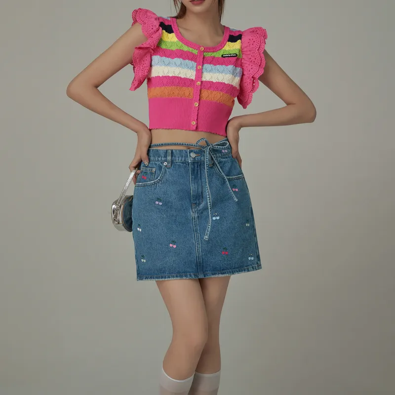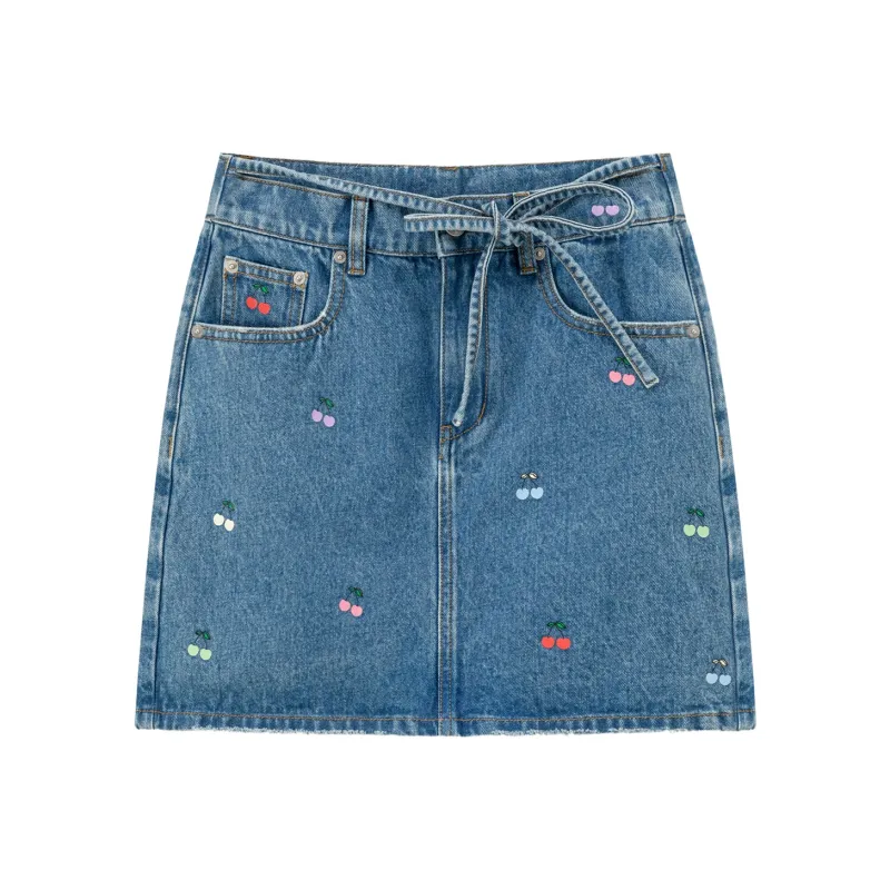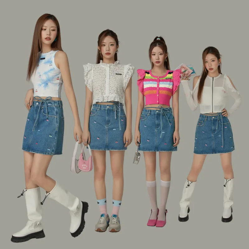 CHUU Джинсовый синий Женские Джинсовые Короткие Юбки