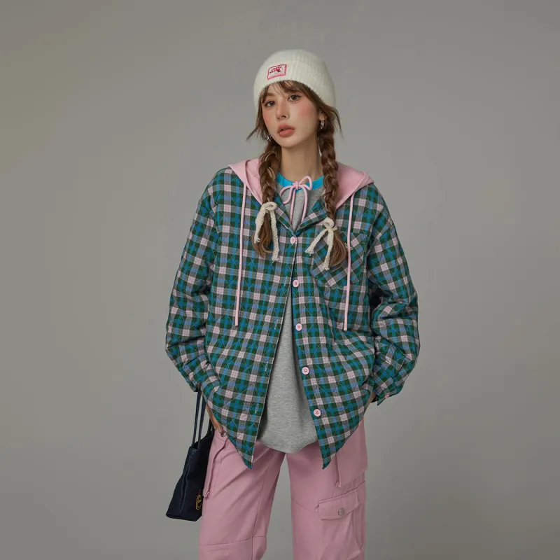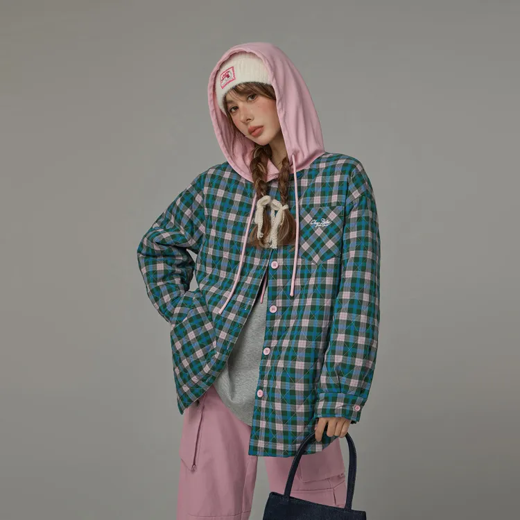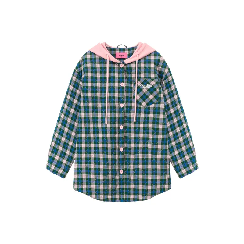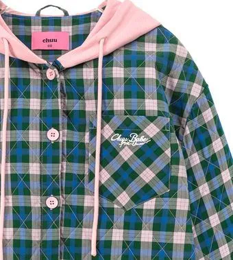 CHUU Зеленая клетка Женские объемные куртки (пуфы)
