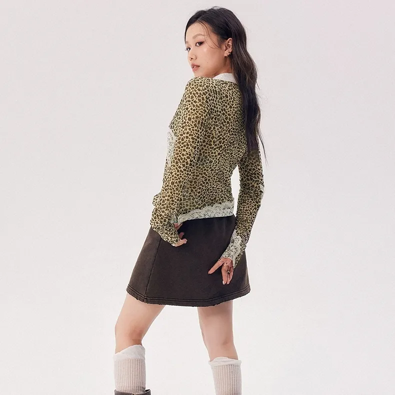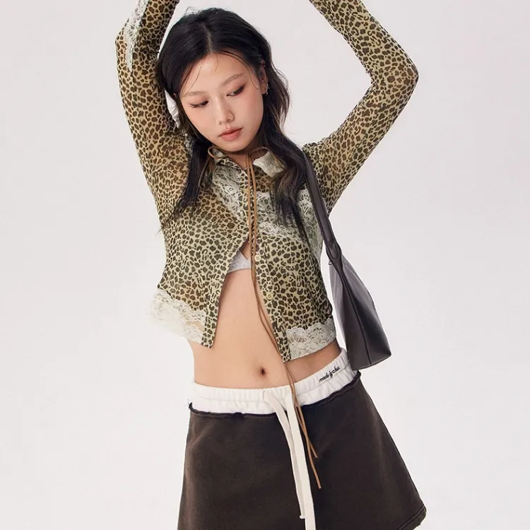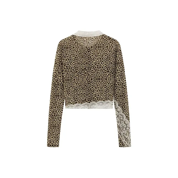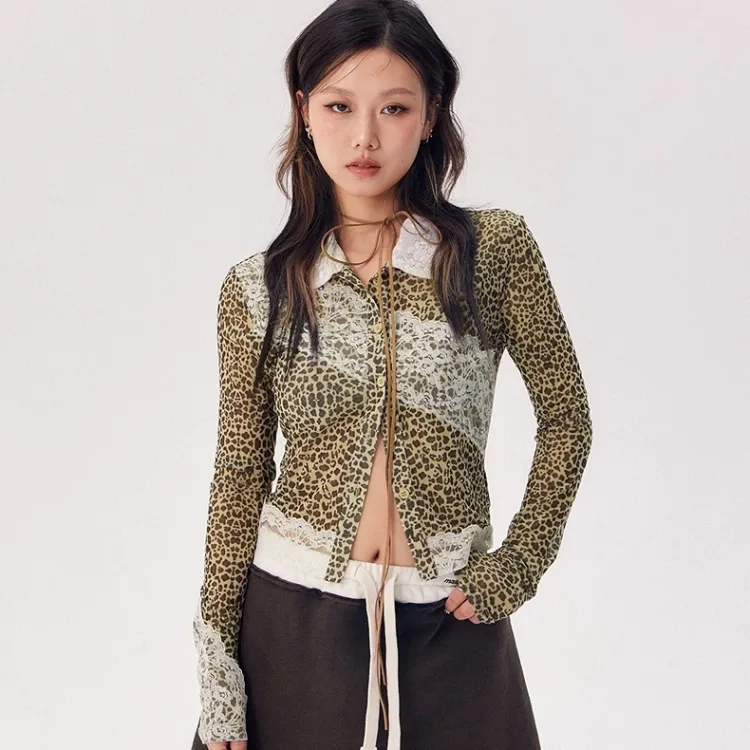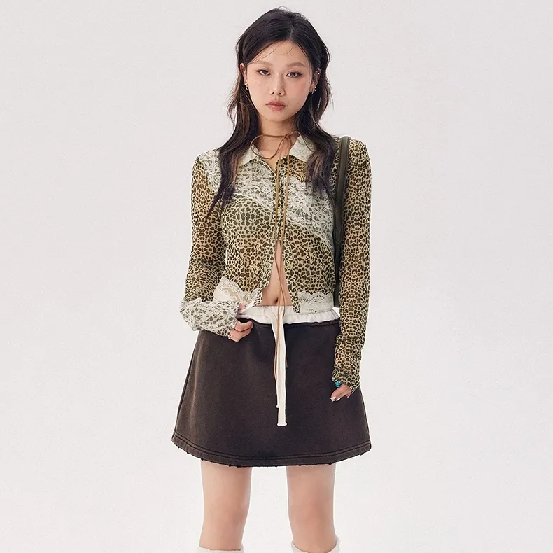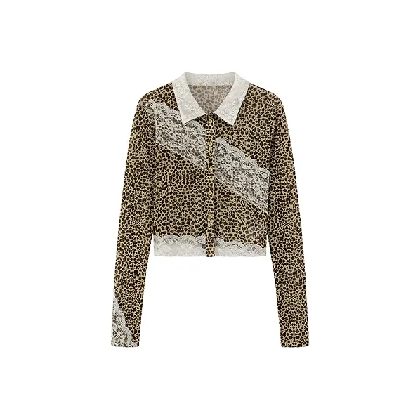 CHUU Рубашка Женская Леопардовый принт Кофейный