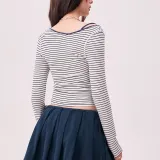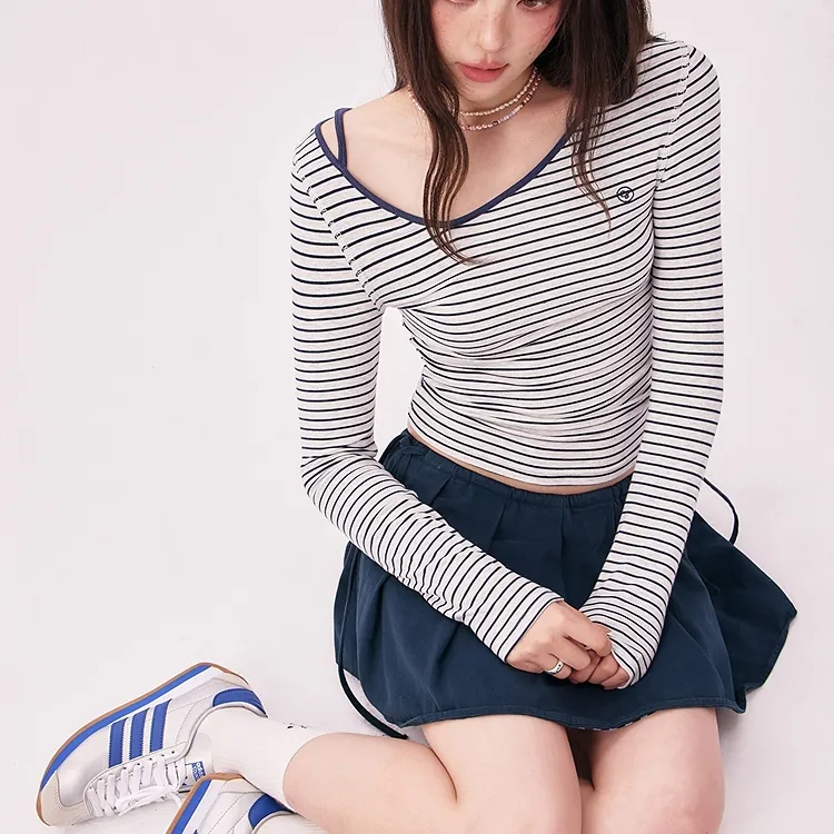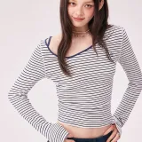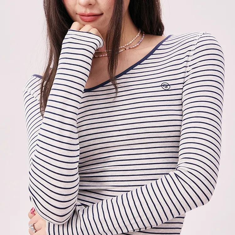 CHUU Синие полосы узор женские T-рубашки