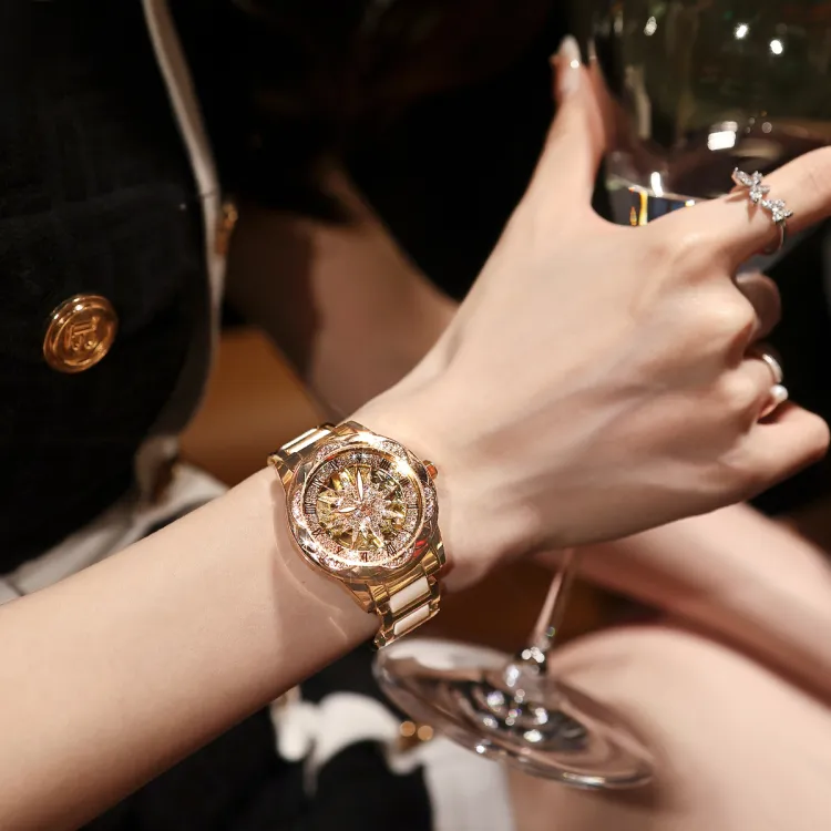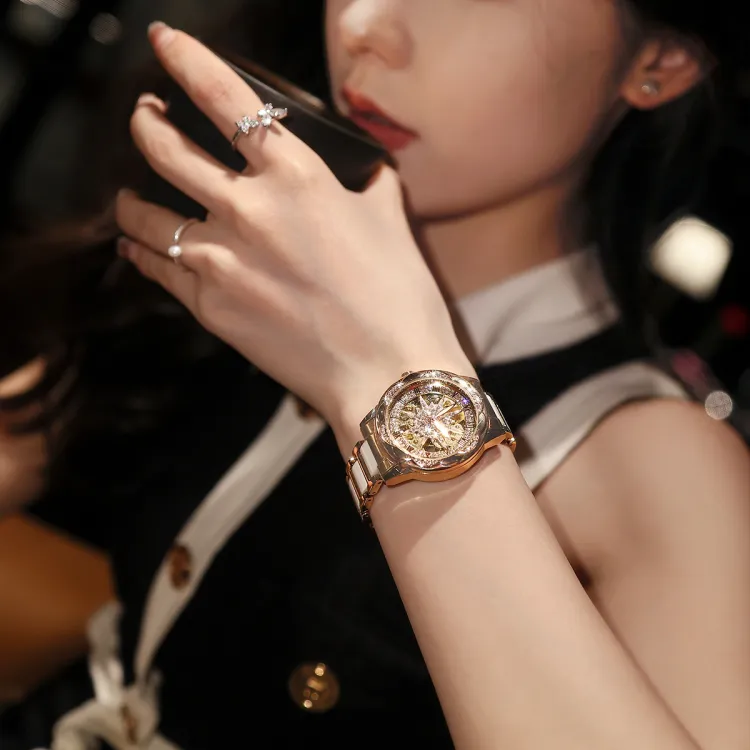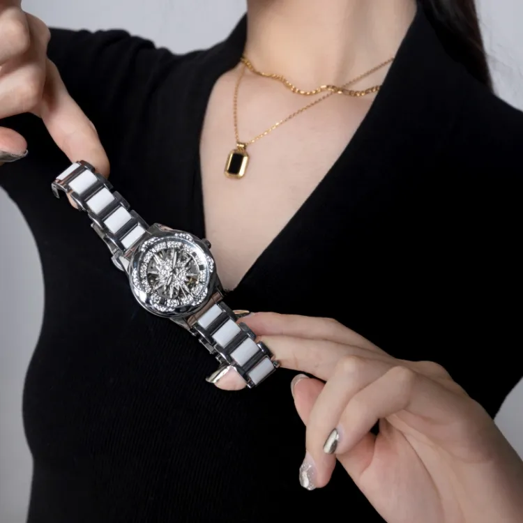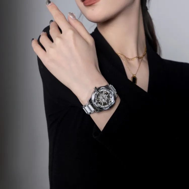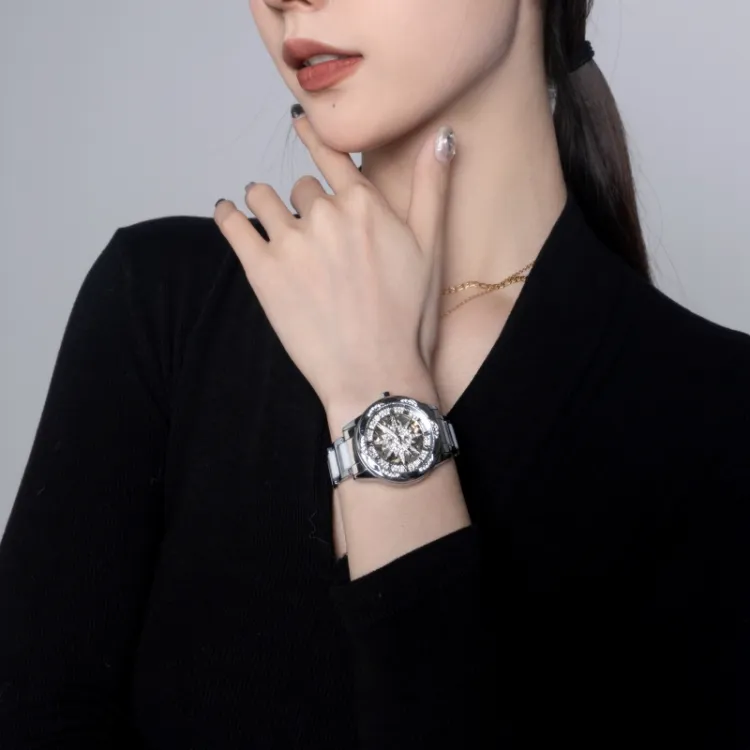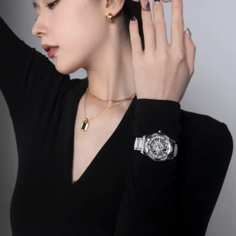 CILOA Механический механизм ремешок из нержавеющей стали женские часы серебристый циферблат