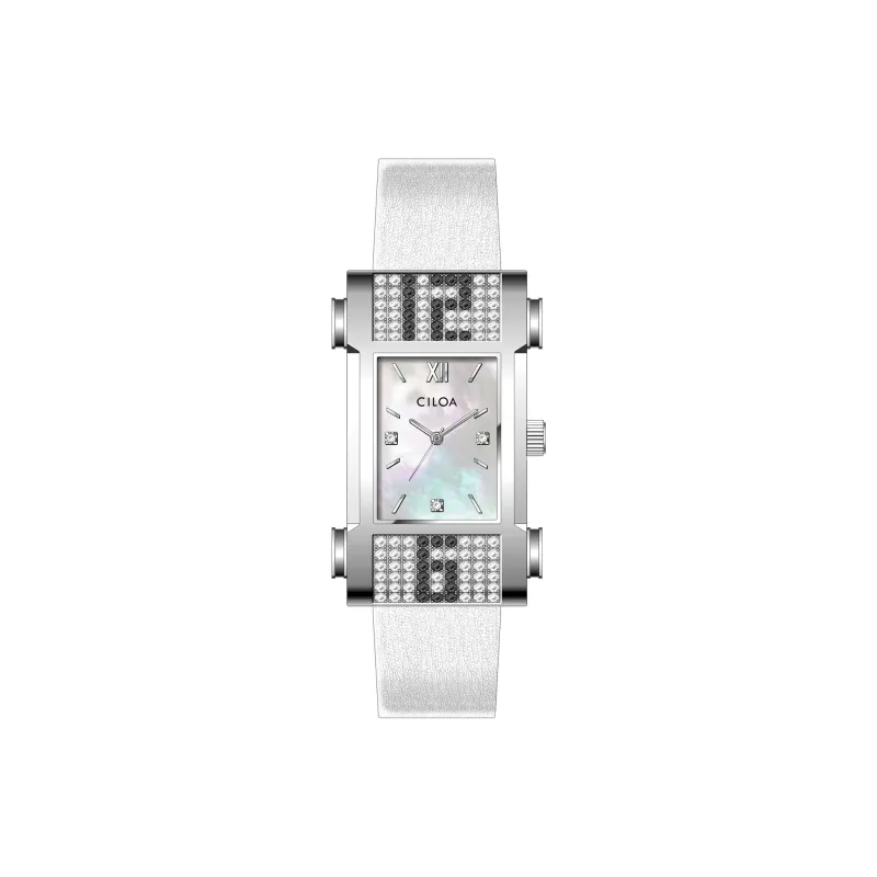 Чёрный Циркон Белый Ремешок