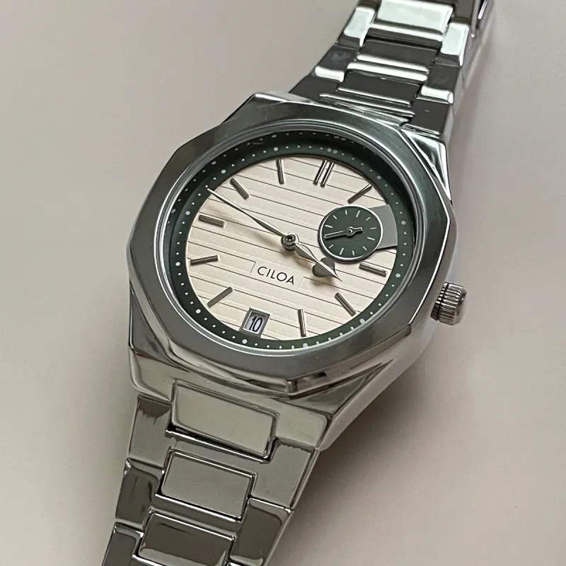 CILOA Кварцевый механизм стальной ремешок мужские часы бежевый циферблат
