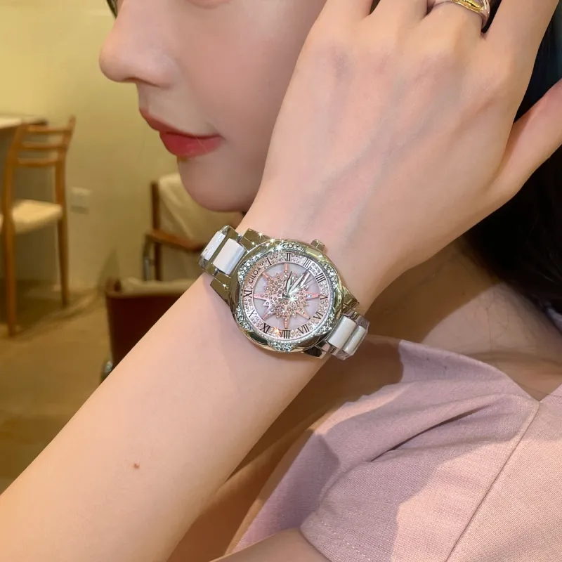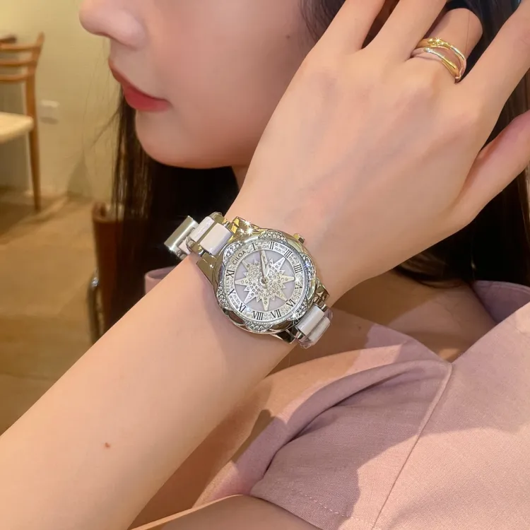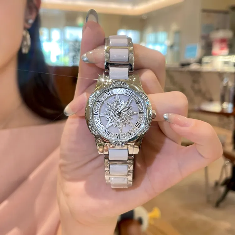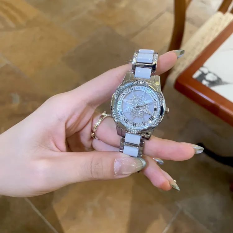 CILOA Кварцевый механизм стальной ремешок женские часы белый циферблат