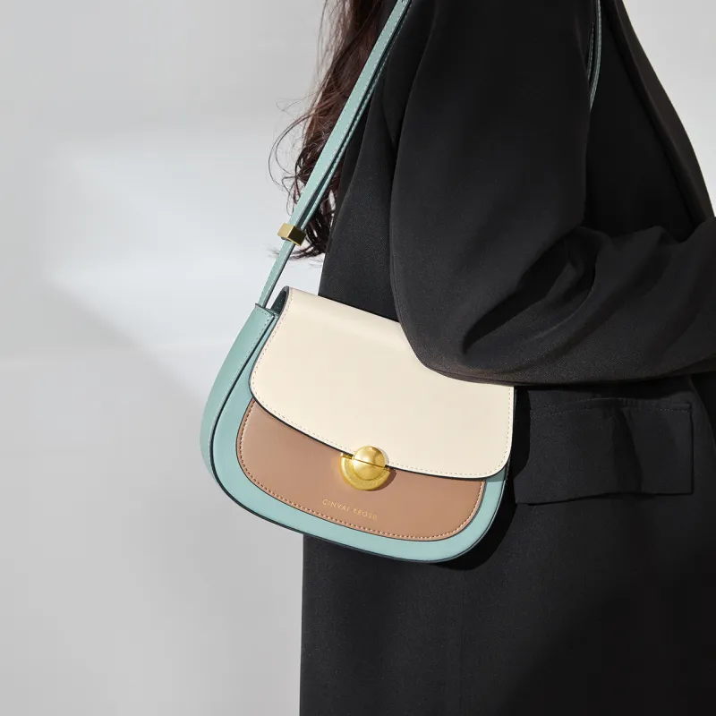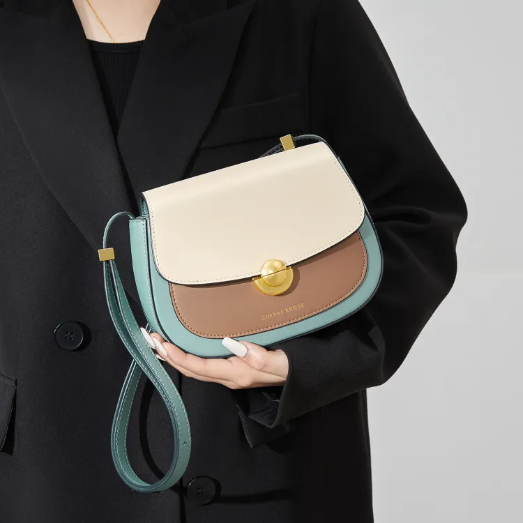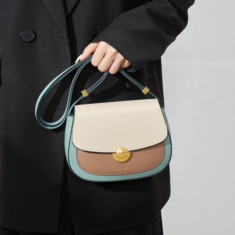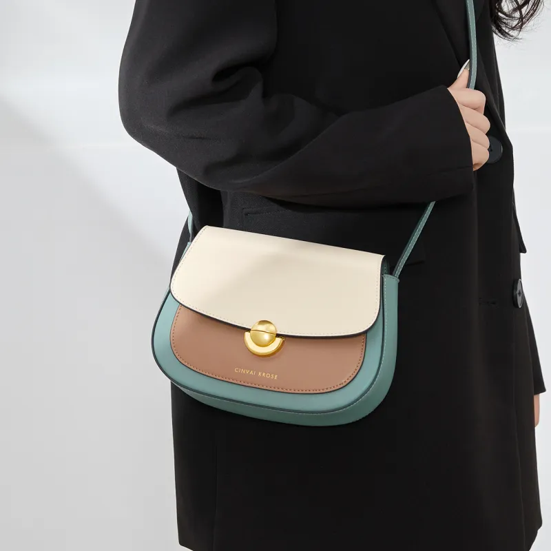 CinvaiKrose Сумка через плечо из коровьей кожи с синтетической кожей маленькая женская кремово-абрикосовая зеленая