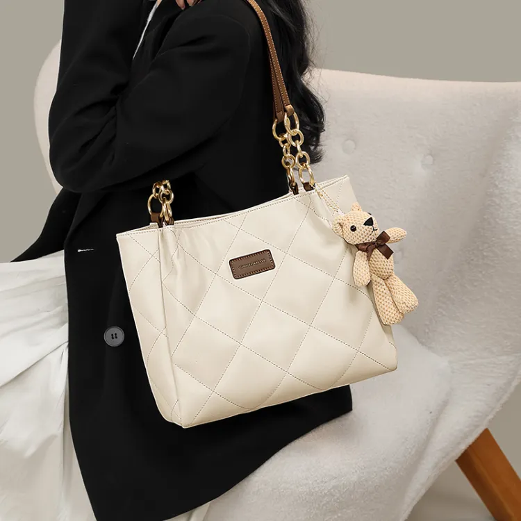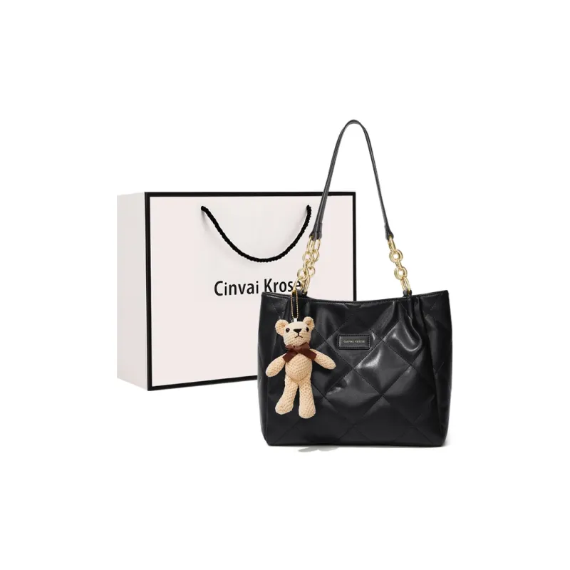CinvaiKrose Сумка через плечо из синтетической кожи большая женская черная экрю