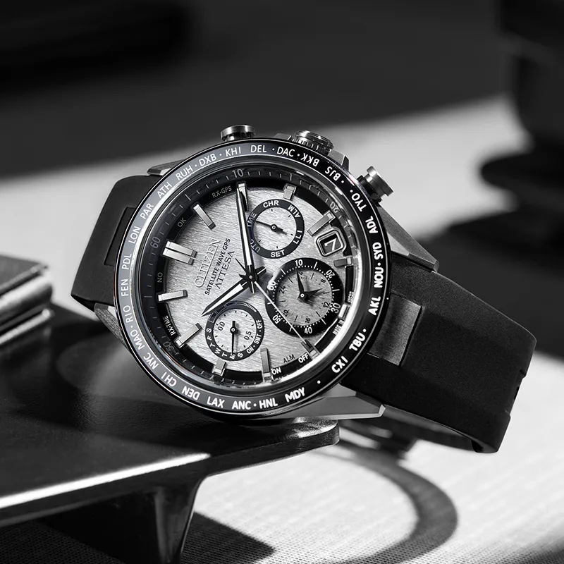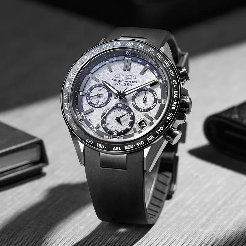 CITIZEN Attesa Series Светильник Кварцевый механизм Титан ПУ (полиуретан) Ремешок Часы Унисекс Серебристый циферблат