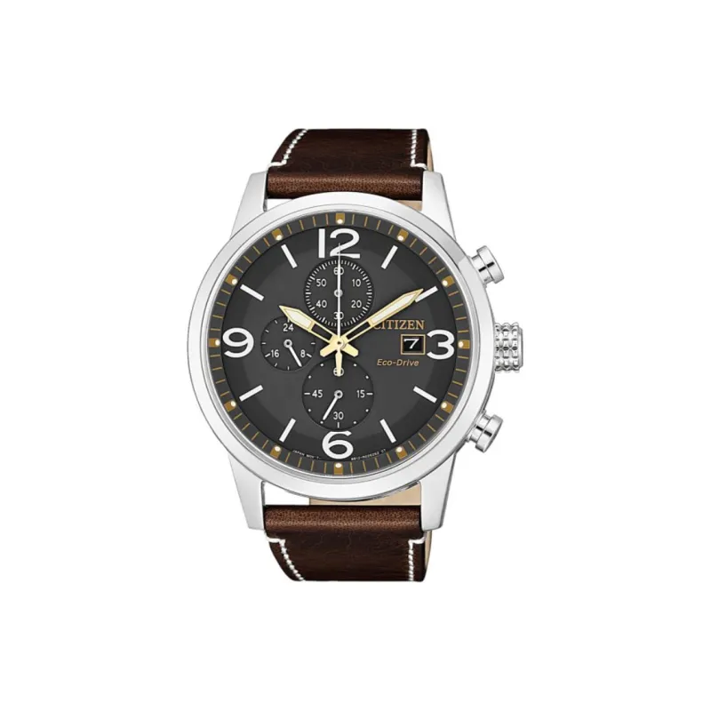 CITIZEN Eco Drive Series Светильник Кварцевый механизм Коровья кожа Ремешок Часы Унисекс Черный циферблат