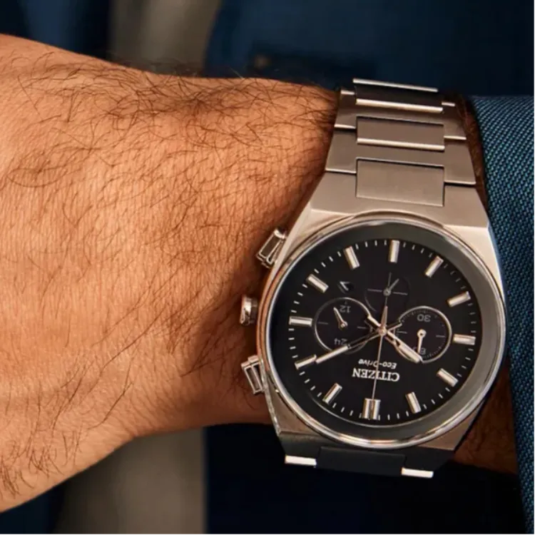 CITIZEN Eco Drive Series Светильник Кварцевый механизм Нержавеющая сталь Ремешок Часы 43 мм Мужские часы Черный циферблат